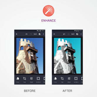 Enhance is basically a photo editor complementing the Camera App and the Gallery app of this phone. It allows quick and easy photo editing with available options.