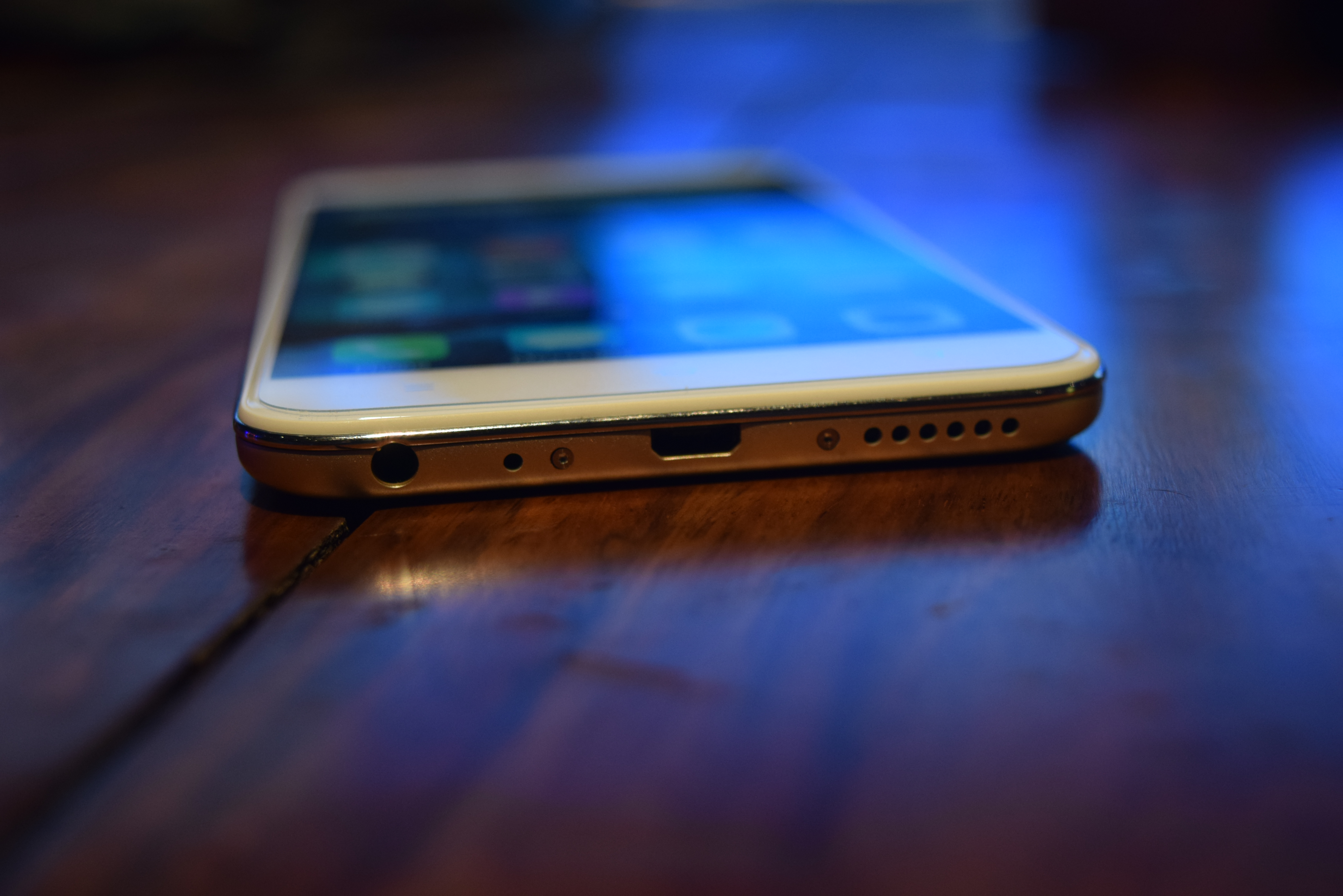 The right edge of the phone has the volume rocker and power button, while the left edge has hybrid sim slot. The bottom edge has the 3.5mm audio jack, microUSB port, and speaker grille.