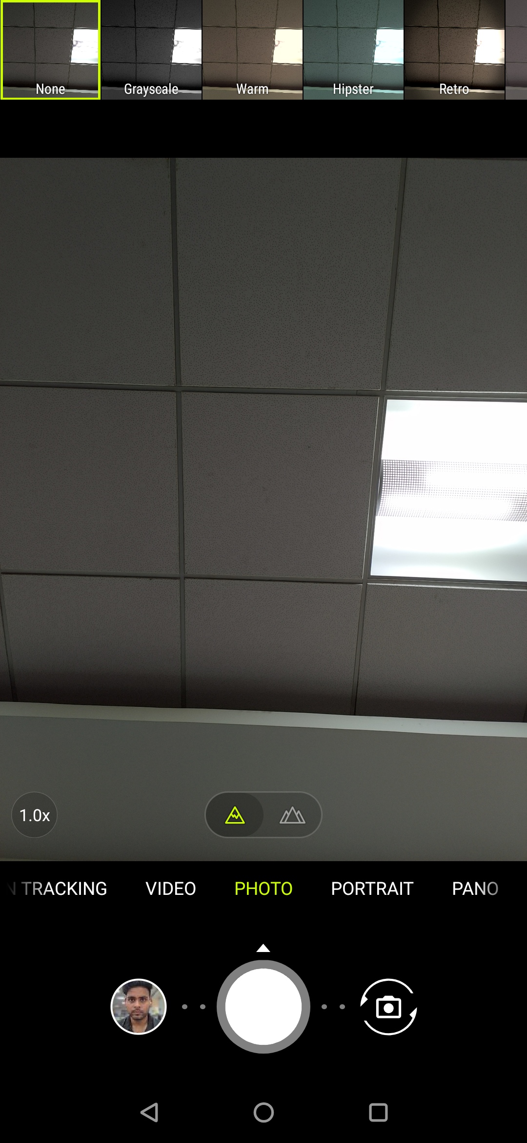 The camera app is pretty impressive. It is quick and responsive. It has a carousel below the viewfinder for switching from one mode to another. Changing from one to another takes a bit of time. There is a standard/wide camera switch toggle just above the shutter button. That allows you to quickly switch from the primary camera to wide angle camera.
