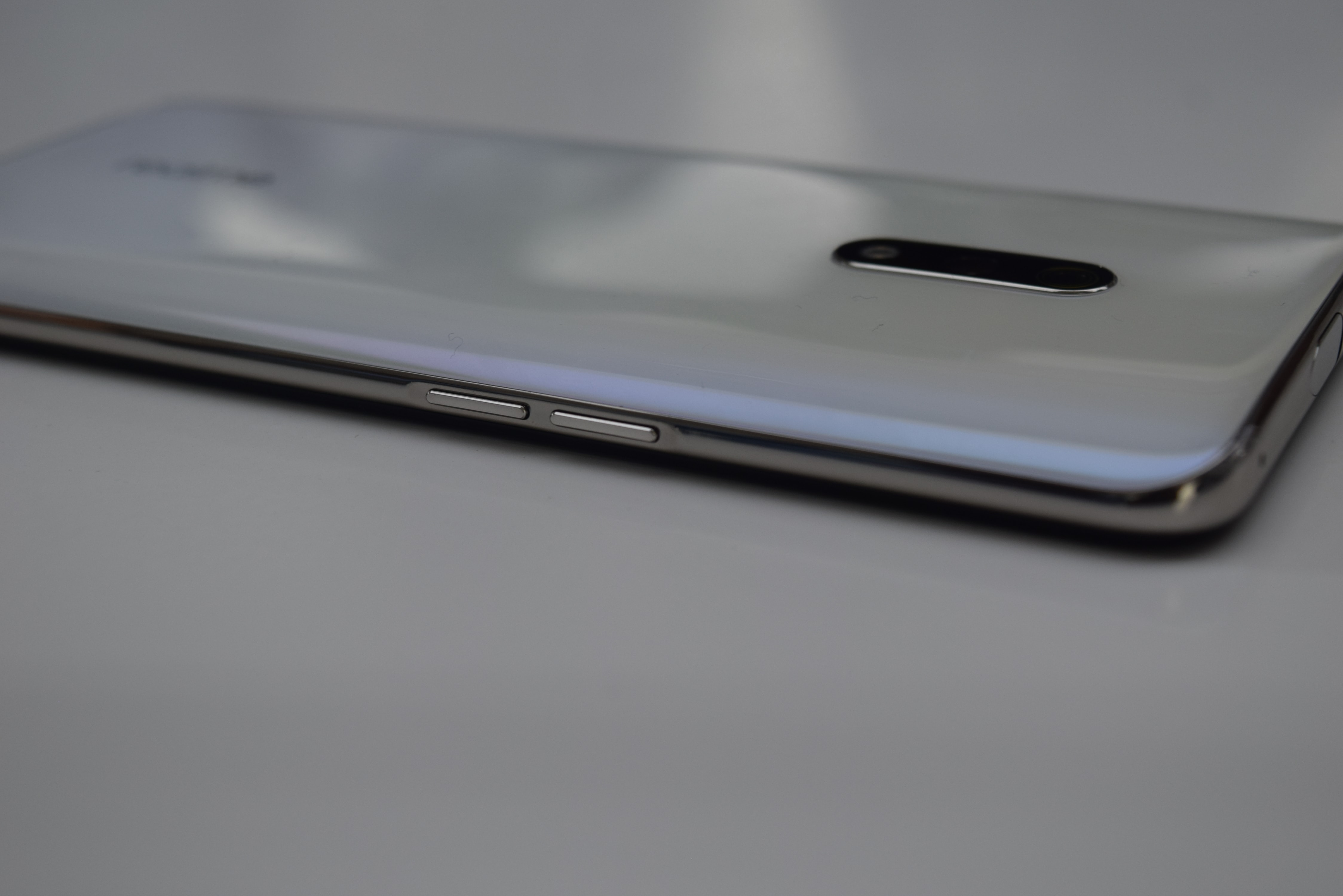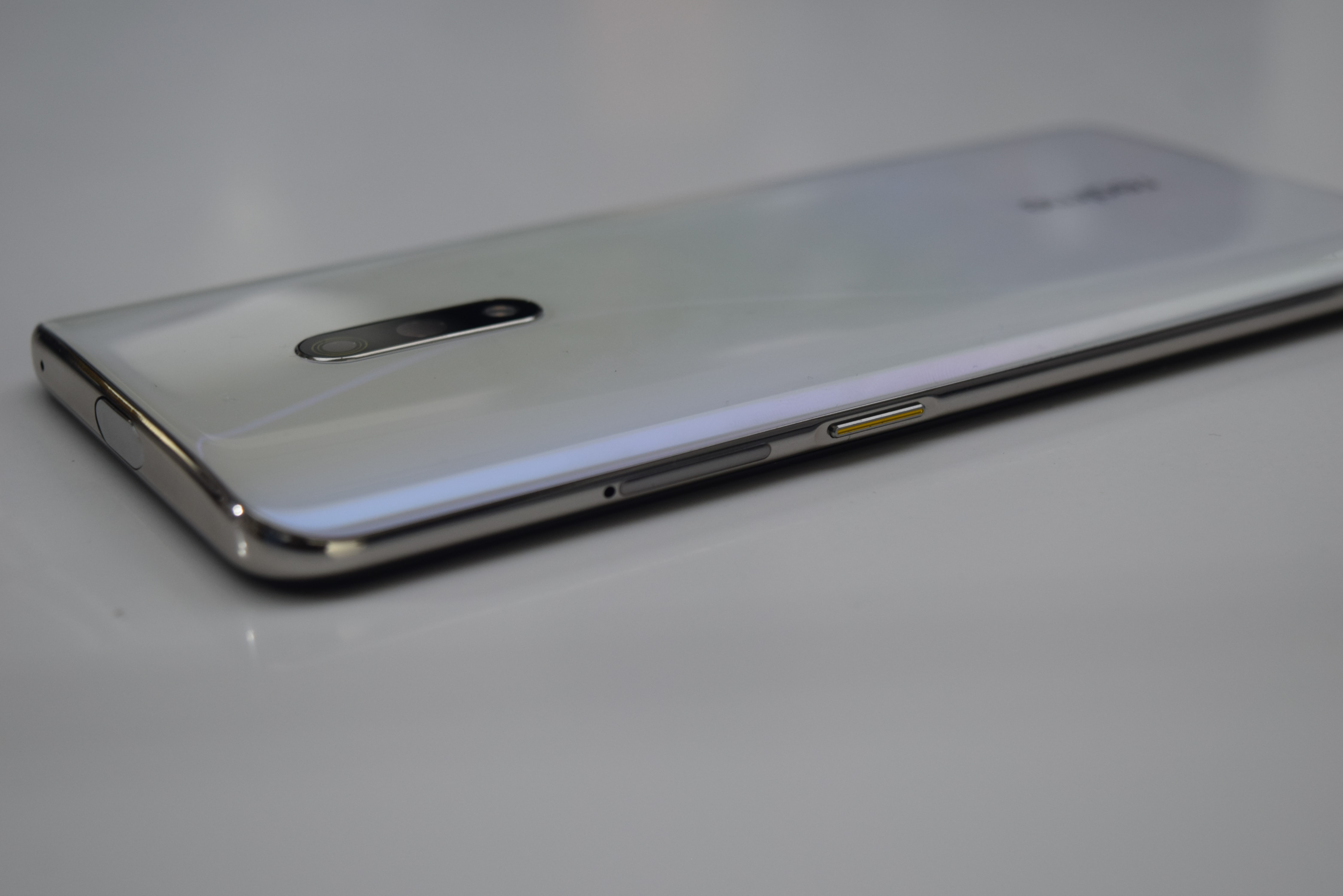 Realme X has a plastic build with a glossy finish. I used the Polar white variant, but the phone also comes in a gradient color option that has shiny purple and blue colors. The Polar white variant looks simple but the other one looks really beautiful.