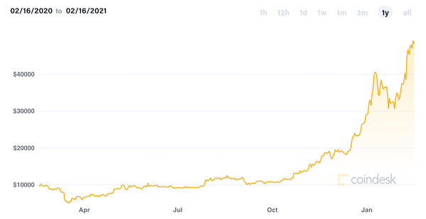 See the Bitcoin price chart below. Once it was below the $5000 mark in March 2020 at its lowest point. Now it has crossed the $50,000 mark.