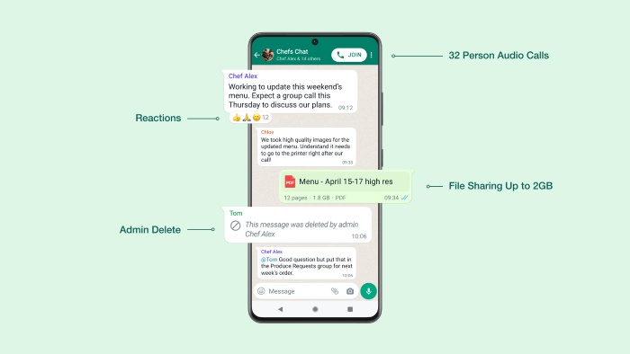 The company has also announced several improvements for groups. WhatsApp groups are now getting Emoji reactions. Group admins will now be able to remove problematic messages from everyone’s chats. The file-sharing limit has been increased up to 2 gigabytes. Groups are also getting one-tap voice calling for up to 32 people.