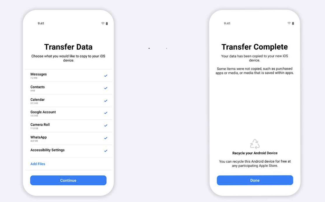 Move to iOS app encrypts WhatsApp data that has to be authenticated on the iPhone before you can access it. It requires an Android phone running Android 5 or later and iPhone running iOS 15 or later. You also need the most recent version of Move to iOS and WhatsApp apps.