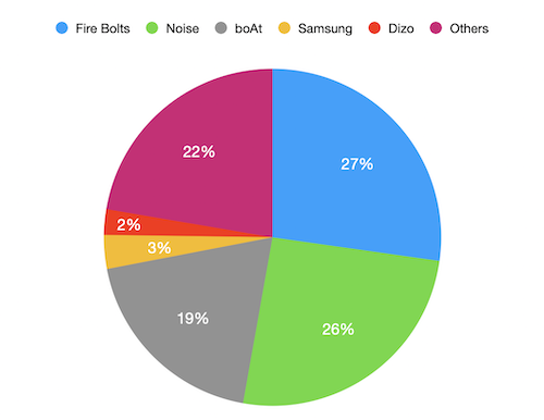 Even if Fire-Boltt and Noise lead by a big margin, the top 3 places will be really competitive in the coming months. Realme, Dizo, and Amazfit can bounce back. With new models, boAt still has a chance to increase its market share.