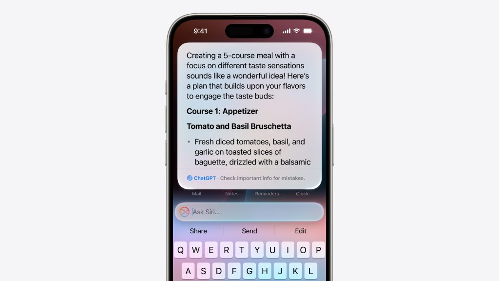 For example, if you ask Siri to provide you with a recipe for something, Siri will ask ChatGPT and provide you with the answer. Users will also be able to ask questions related to photos, documents, or PDFs by including these files with your questions.