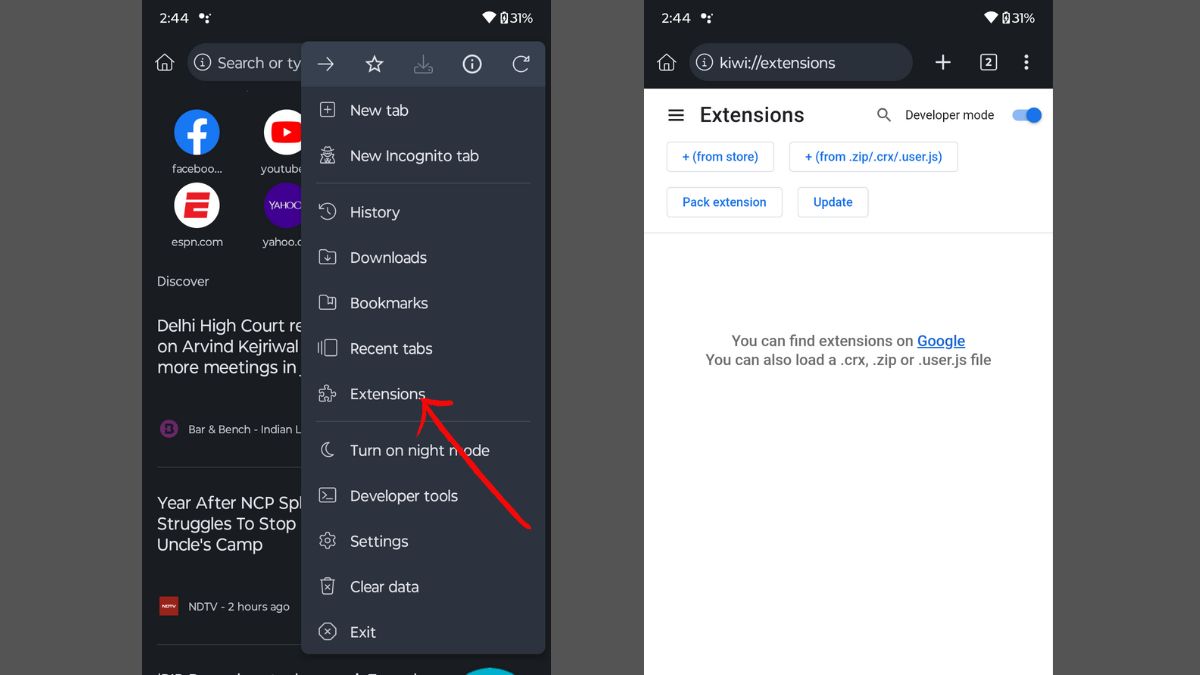 The most notable feature of Kiwi Browser is the support for desktop Chrome extensions. You can either install an extension from the Chrome web store or directly upload the extension files. So, users can integrate several tools in Kiwi for improved productivity.