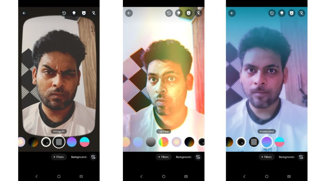 After you tap the effects icon, you see the filters. Select any filter to capture a photo or video with the selected filter.