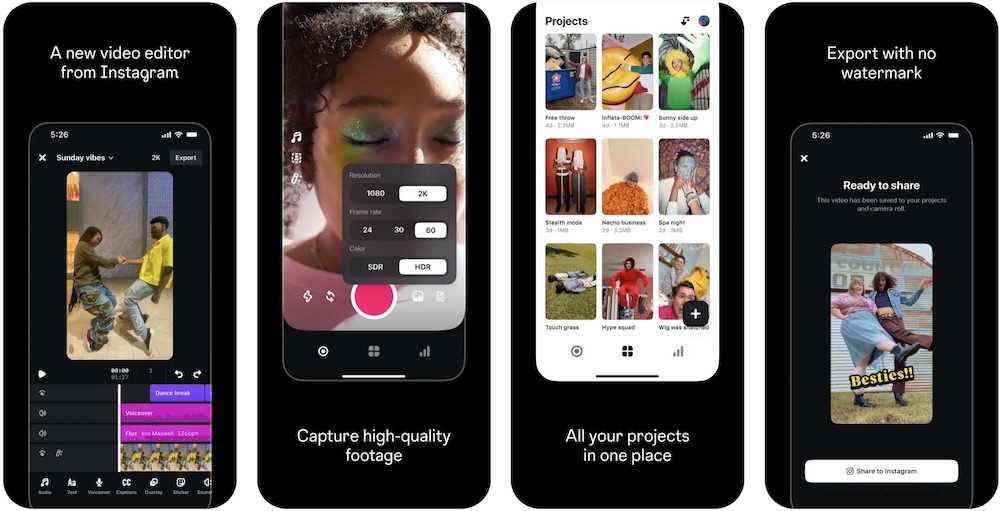 The ‘Edits’ app aims to provide an easy-to-use video editing app with various innovative features. Users can export videos with watermarks. It can capture up to 10-minute clips in FHD or 2K resolution with support for up to 60FPS and HDR. The app also has seamless sharing to Instagram in 1080p.