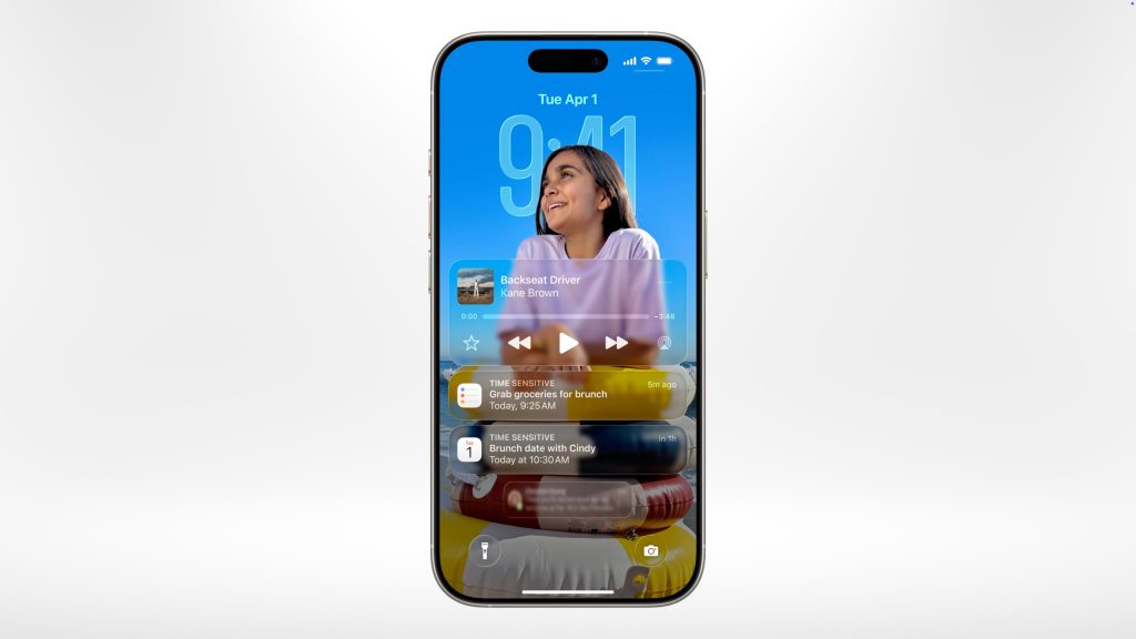Liquid Glass introduces many subtle but powerful visual changes. On the iPhone Lock Screen, for example, the clock’s numbers “nestle” into the wallpaper and pick up its colors, blending naturally with the background.