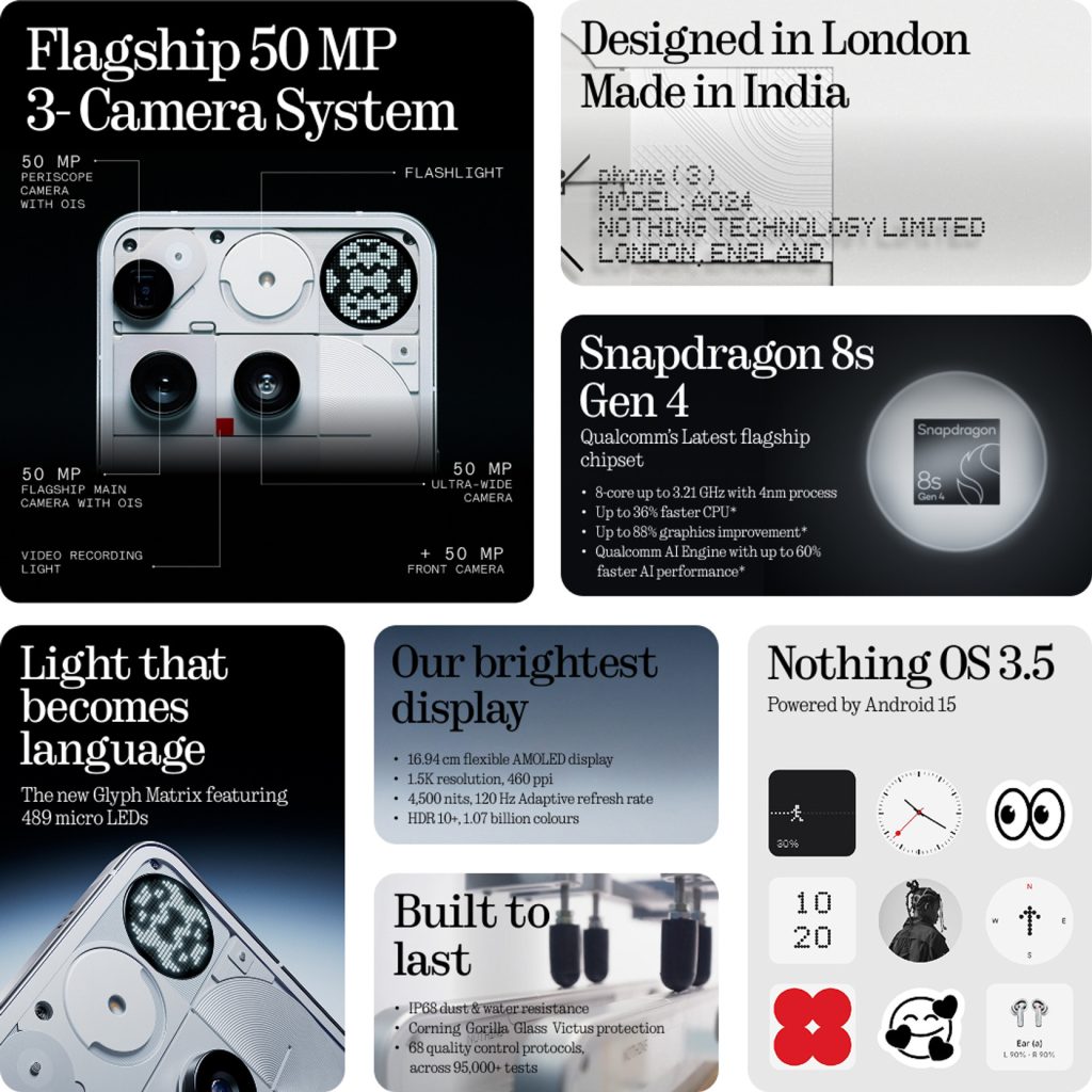 Nothing has launched its most powerful phone yet, the Nothing Phone 3. It is the brand’s first true flagship, and it directly takes on phones like the iPhone, Samsung Galaxy S24, and Pixel 8 Pro. Nothing Phone 3 brings a big design upgrade, top-end hardware, and a reliable software experience. The new Glyph matrix looks fresh, the cameras finally feel flagship-grade, and long-term updates make it a solid premium phone.