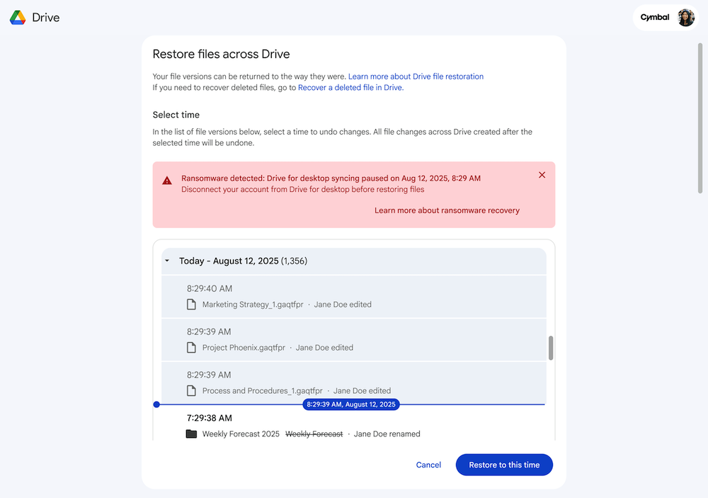 To address this, Google has announced a new AI-powered ransomware detection system for Google Drive for desktop. This feature is designed to stop ransomware from spreading by automatically pausing file syncing and giving users a quick way to restore files.
