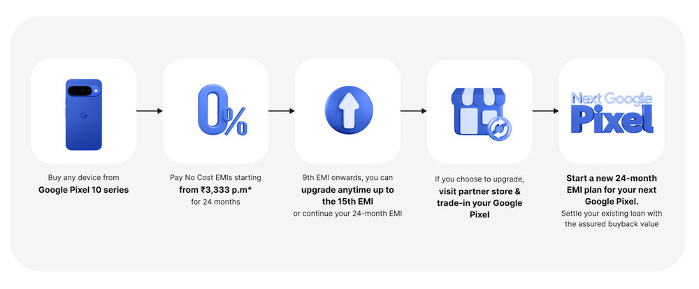The Pixel Upgrade Program has been developed in partnership with Cashify, Bajaj Finance Ltd., and HDFC Bank. The program will run until June 30, 2026, and will be available at authorized retail stores across India.
