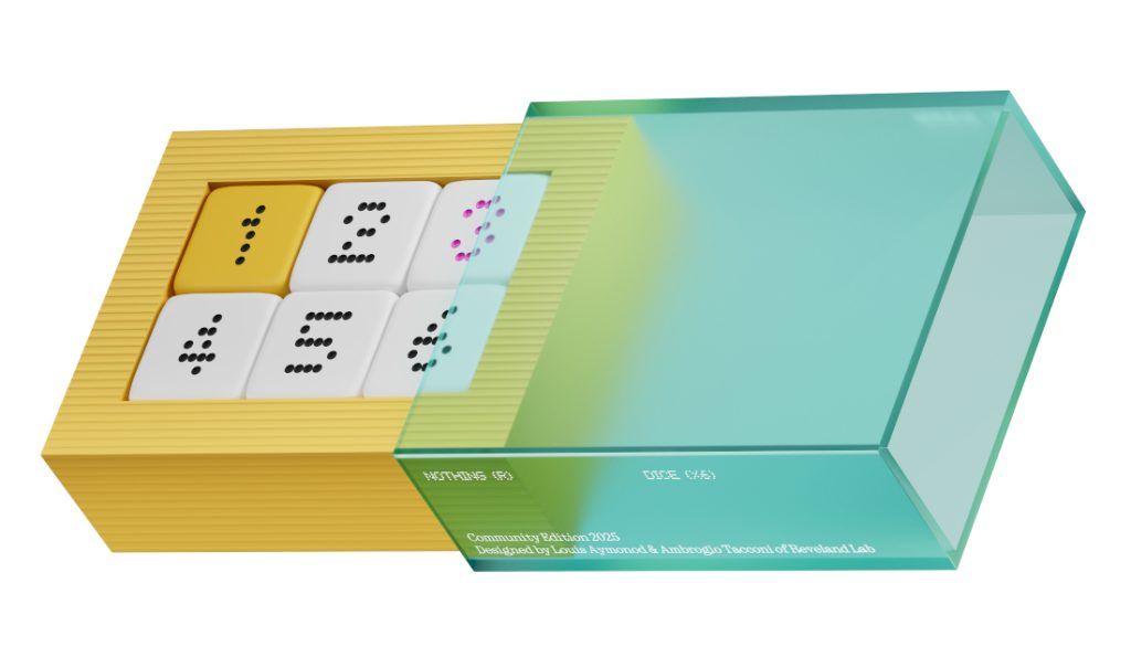 For the first time, the project included an Accessory Design category. The submission from Ambrogio Tacconi and Louis Aymond was selected. Their concept features a Dice accessory with each face showing numbers in Nothing’s Ndot 55 font.