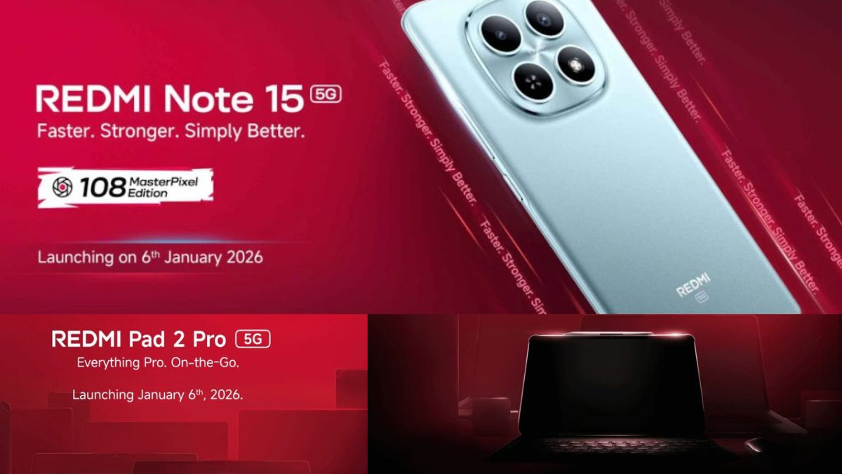 Xiaomi has confirmed that it will launch two new REDMI products in India on January 6, 2026. The company will introduce the REDMI Note 15 5G smartphone along with the REDMI Pad 2 Pro 5G tablet.