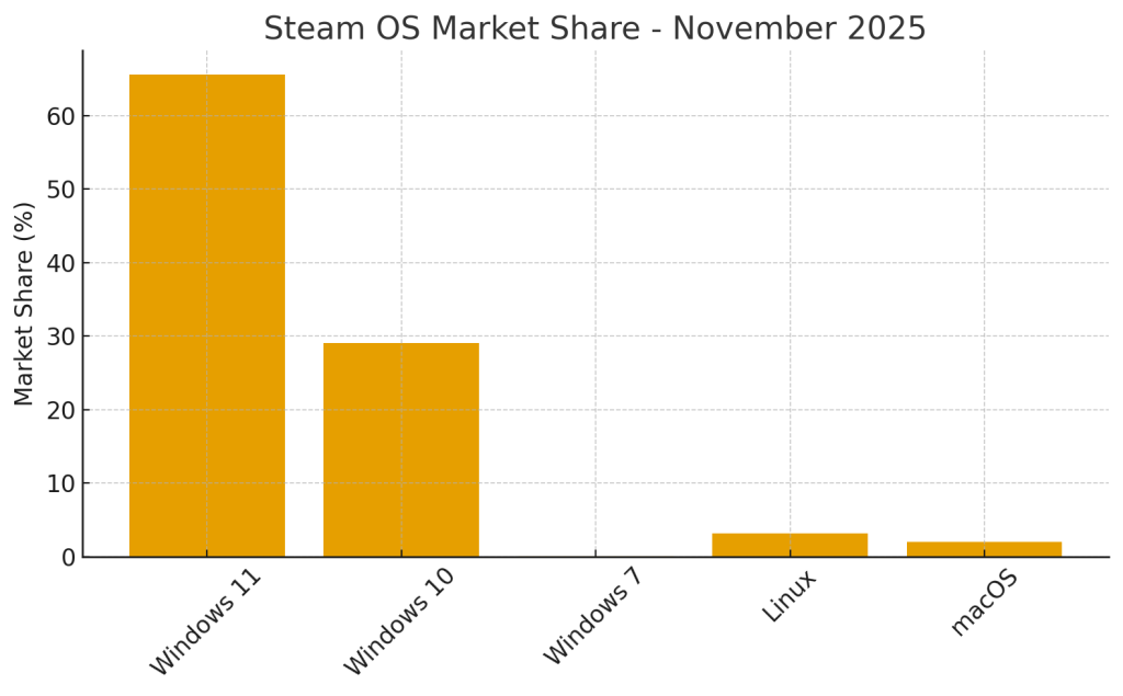 Windows 11 has reached a new milestone on Steam. Valve’s latest Hardware & Software Survey for November 2025 shows that Windows 11 now holds 65.59% market share, its highest ever on the platform. The OS gained 2.02 percentage points in a single month, which is a clear sign that more gamers are finally upgrading.