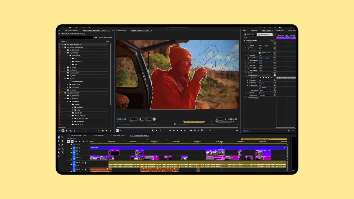 In Premiere Pro, the biggest addition is a new AI-powered Object Mask tool. This feature lets users quickly select and track people or objects moving inside a video. You just hover over the subject and click. Premiere generates a mask in seconds. The mask is accurate by default, but users can resize or fine-tune it if needed. Adobe says this feature runs on-device using its own AI model and does not use user data for training, which should ease privacy concerns.