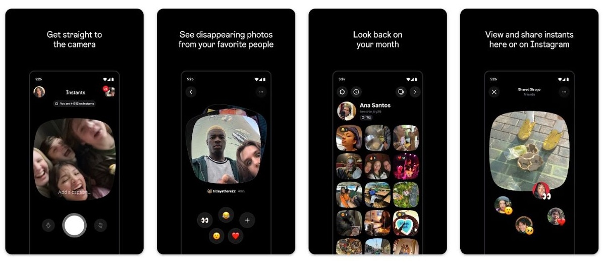 Instants focuses on quick and private sharing. You open the app, take a photo or short video, and send it instantly. There are no editing tools or filters to slow things down. The idea is to capture and share moments as they happen.