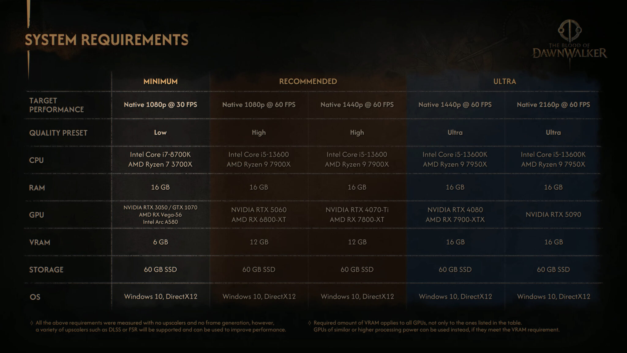 These requirements are based on native resolution without upscaling. DLSS and FSR will be available at launch, which should help improve performance on lower-end systems.