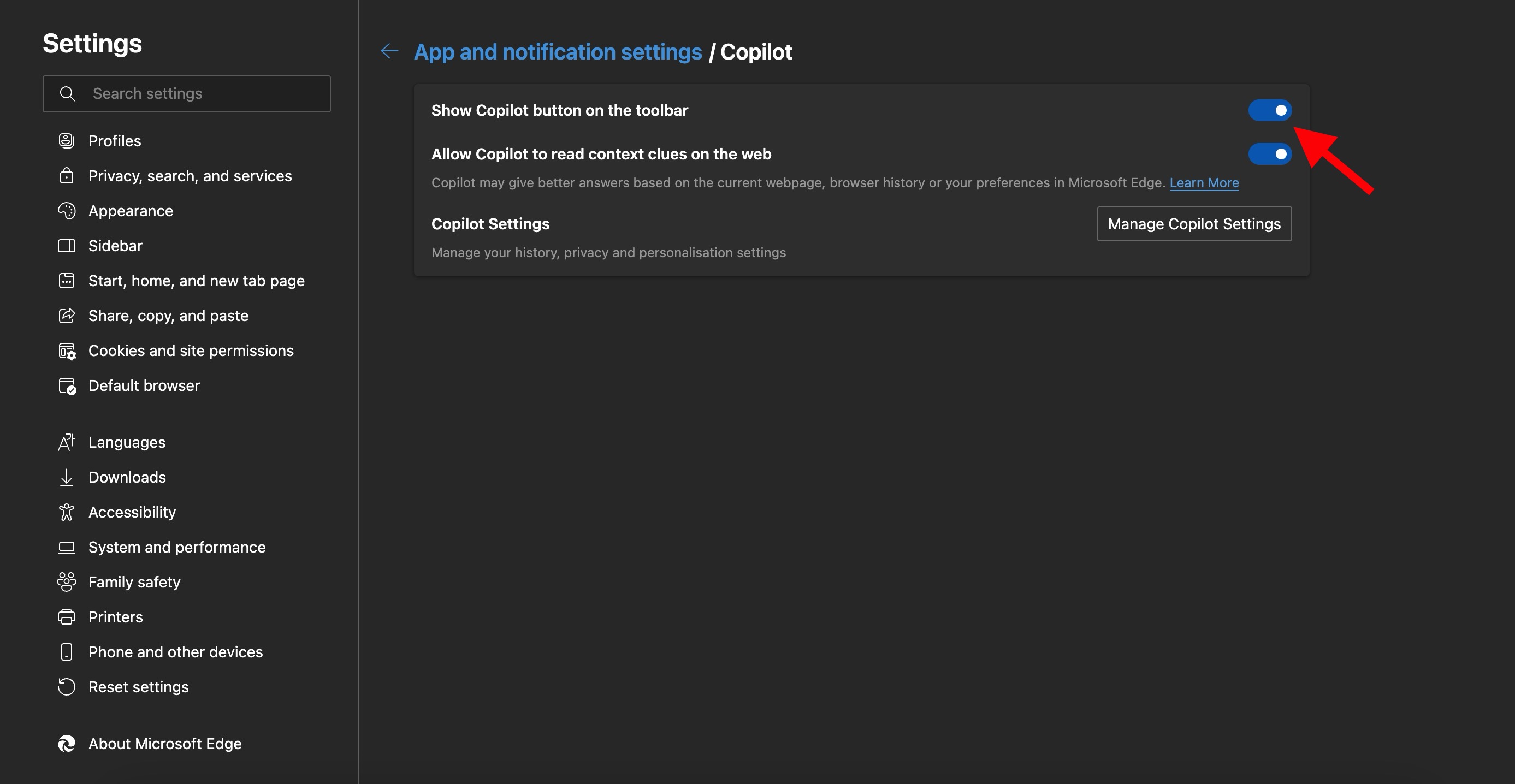 - Toggle off the option that shows Copilot in the toolbar or sidebar.