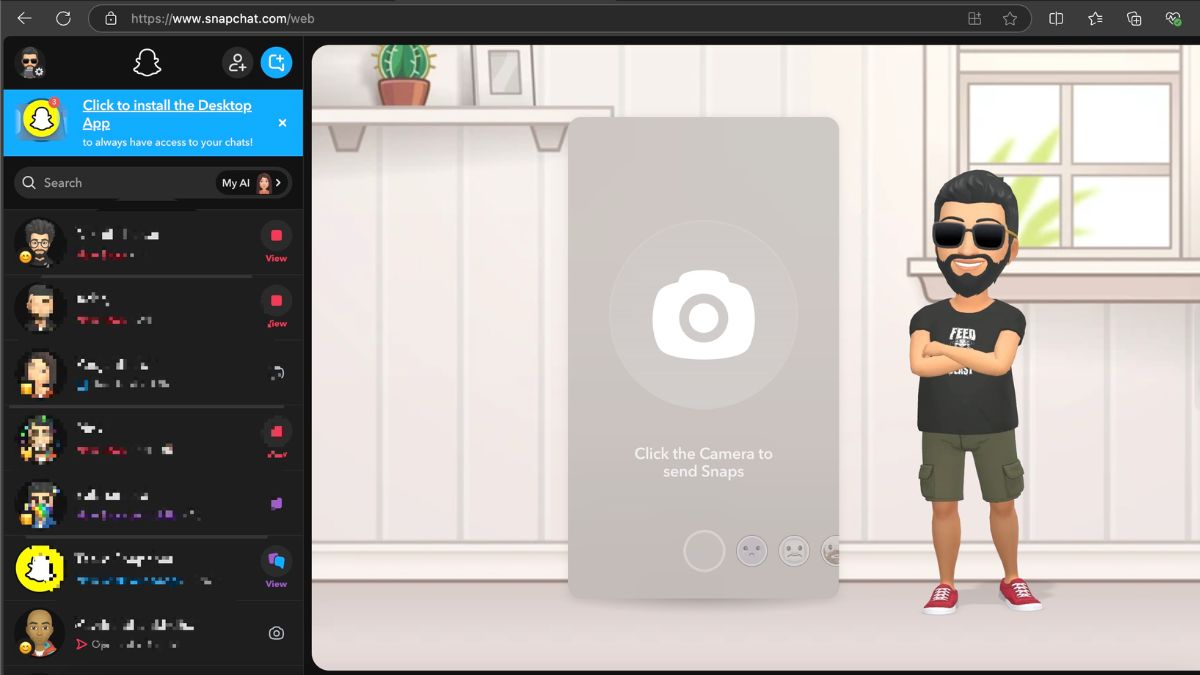Once you log in, you will see your chat list on the left side. The layout is clean and easy to understand. If you already use Snapchat on your phone, you will not feel confused.