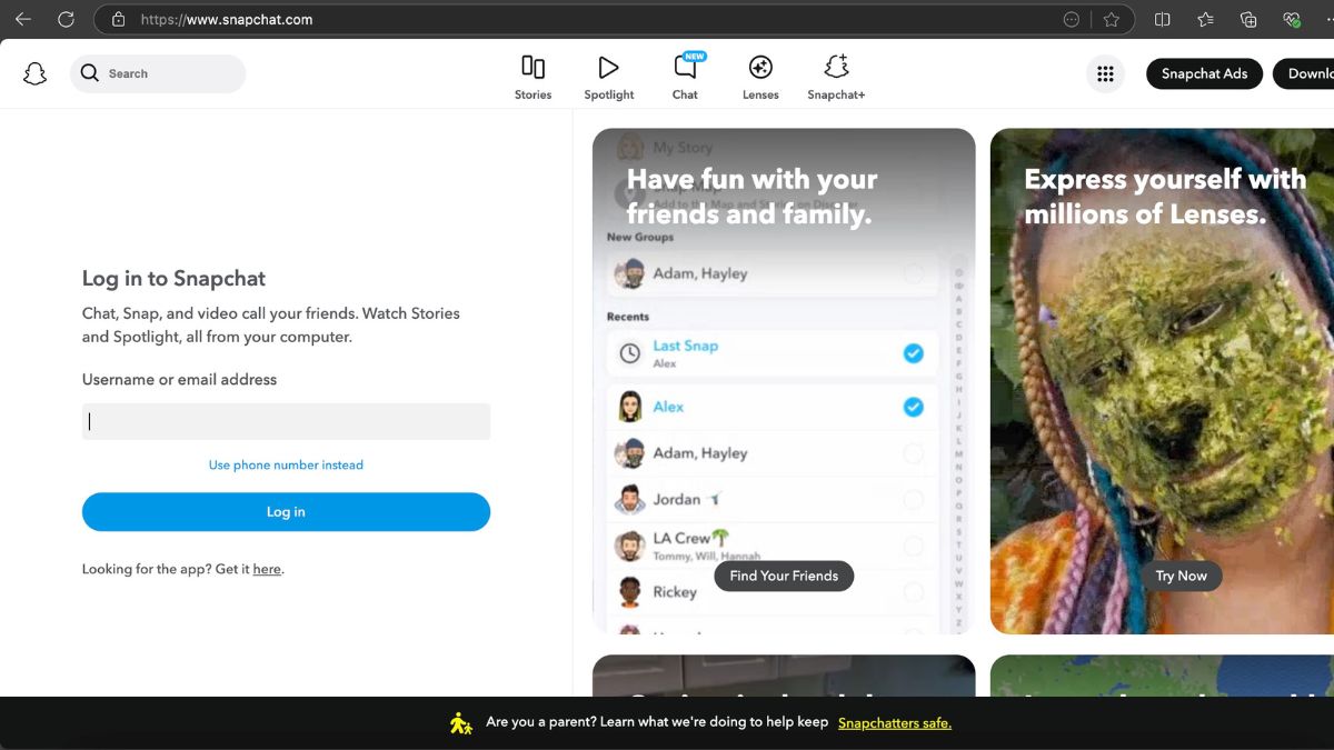 It is very easy to use Snapchat Web. You only need your Snapchat account and a browser. First, open your browser and go to snapchat.com. Log in using your Snapchat username and password.