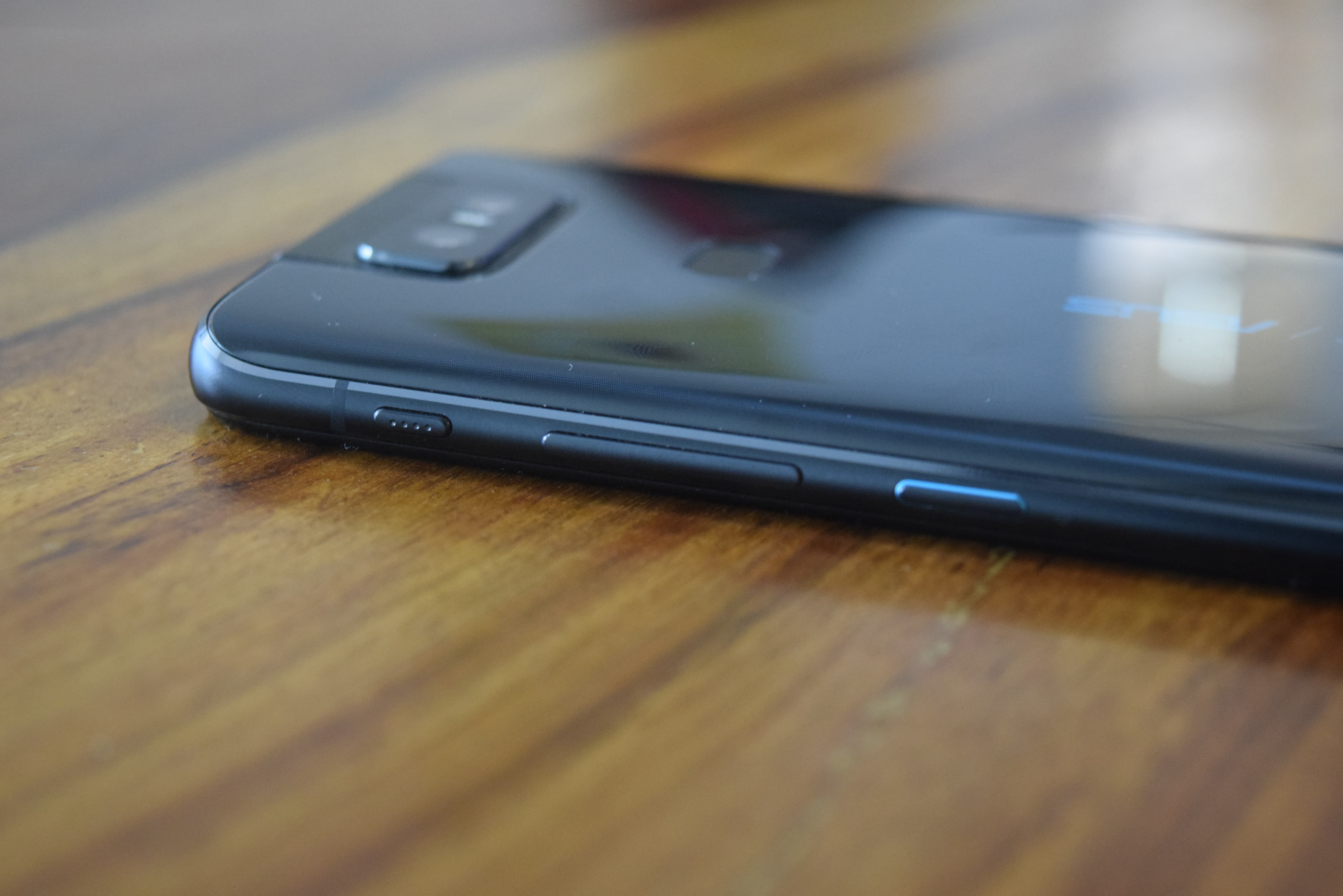 It sports an aluminum frame around the rim and the body is made of Gorilla Glass. The glass back isn’t much slippy but it attracts fingerprints and smudges. Asus offers a transparent protective cover to keep the phone safe without hiding its beauty. This phone doesn’t carry any IP ratings, might be due to this Flip module. SO the phone is not waterproof or splashproof by any means.