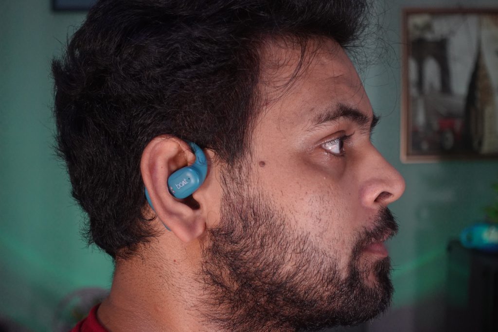 OWS Buds are larger than TWS buds because they fit around the ear and require hooks to stay there. It is made of plastic and a matte finish gives it a premium feel. On the outer part, there’s a notification LED and boAt branding. This is also the touch-sensitive area to control music playback and calls. Single tap to play and pause music or accept calls. Double-tap on the right for the next track and double-tap on the left for the previous track. A triple tap on the right bud puts it to the beast mode for gaming and a triple tap on the left activates voice assistant. Although touch controls work fine, there’s a slight delay that feels irritating in the beginning until you get used to it.