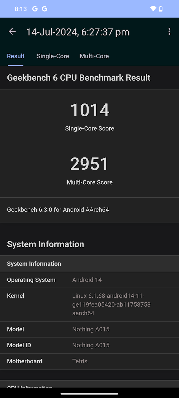 The phone runs Nothing OS 2.6 on top of Android 14. Nothing promises two years of major Android updates and three years of security patches. The UI is clean and snappy. It also has a limited number of preinstalled apps compared to other devices of this price segment. Users also get an option to choose between Android’s Material UI and NothingOS themes