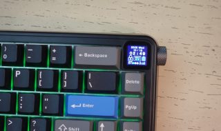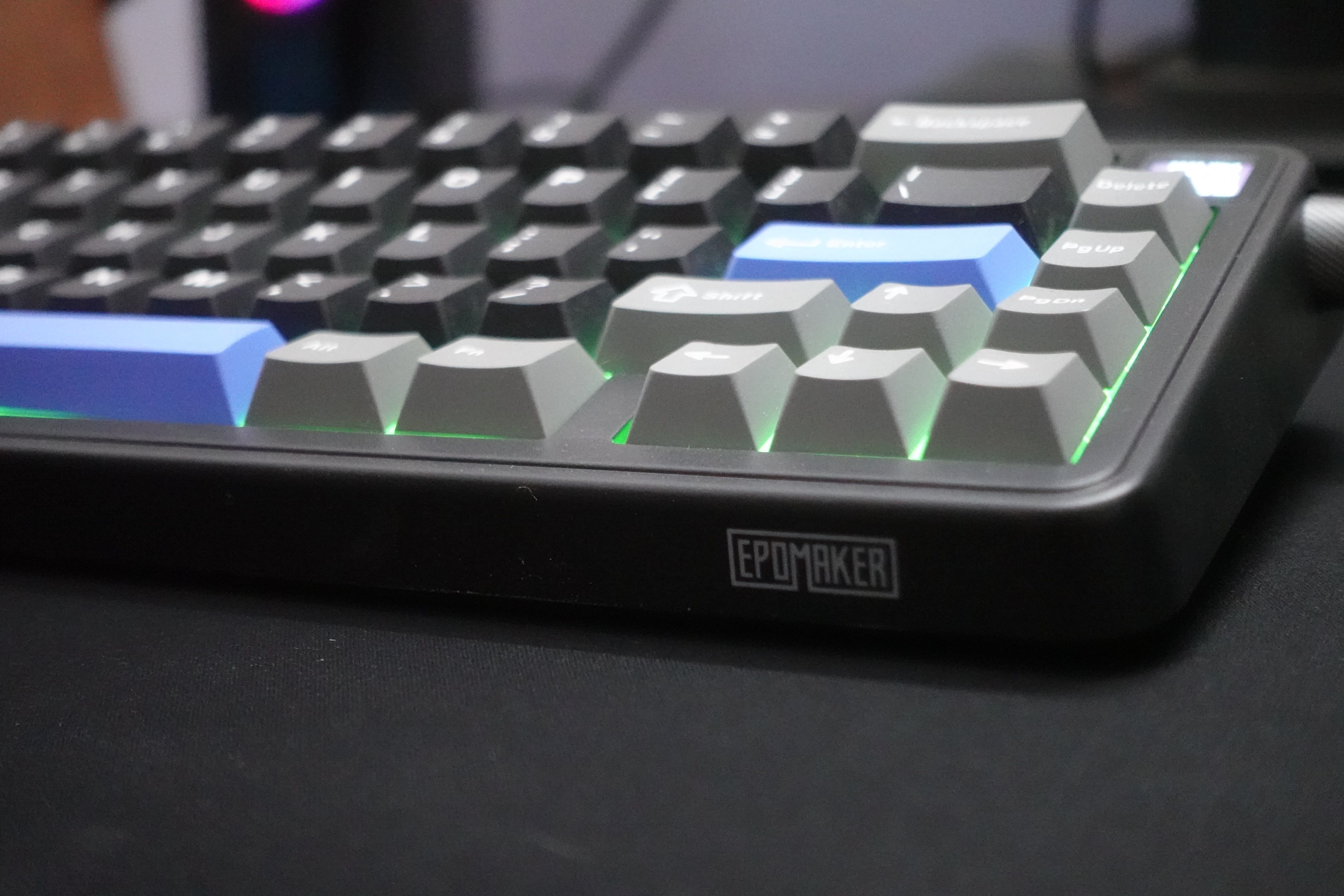 On the top right, you will find a metallic knob and a small TFT color screen. The knob feels premium and tactile, while the screen is bright and crisp. The screen shows system information and quick settings options. You can scroll the knob to go through different options and press the knob to select it. By using the Epomaker software, you can also customize the display to show a GIF or any photo of your choice. Additionally, you can also configure the knowb to control the system volume.