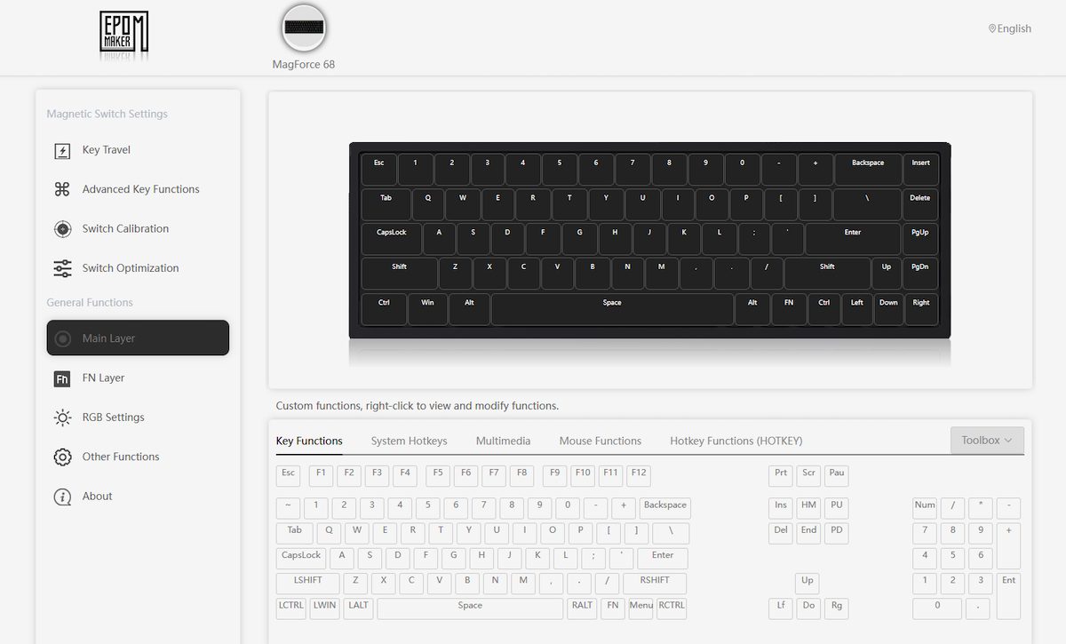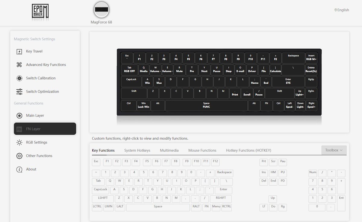 The Magforce 68 can be customized using a web-based software accessible at epomaker.longeplay.cn.