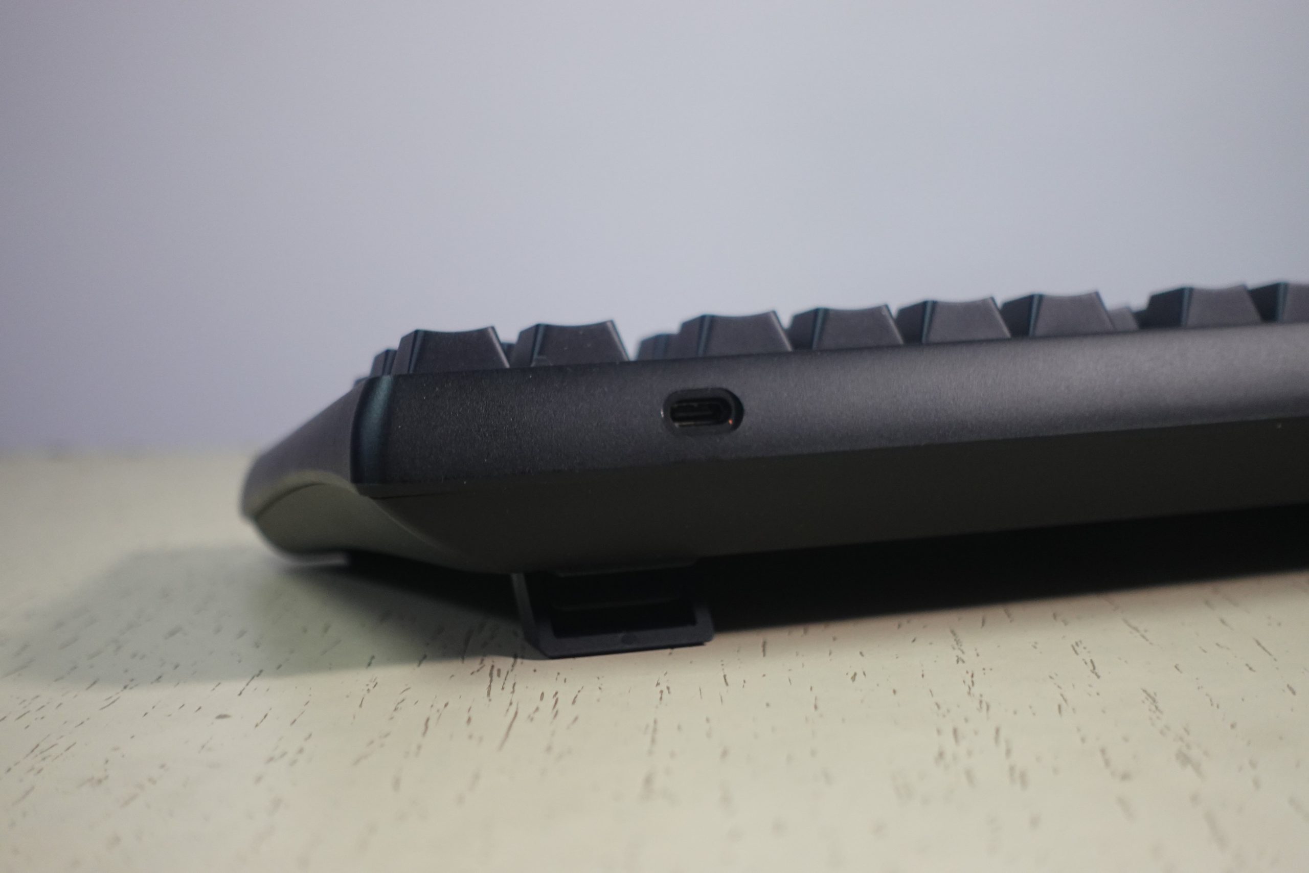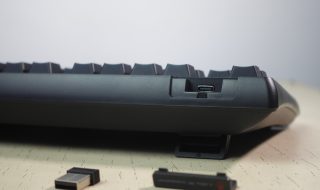 Look at the top edge, there’s a type-C port on the right side. It is for attaching the cable for wired connectivity with your PC. At the right side of the edge, there’s a cap. Removing it uncovers the USB dongle for Bluetooth connectivity. Attach this dongle to your PC and then switch to Bluetooth mode on the keyboard to pair the keyboard with your PC.