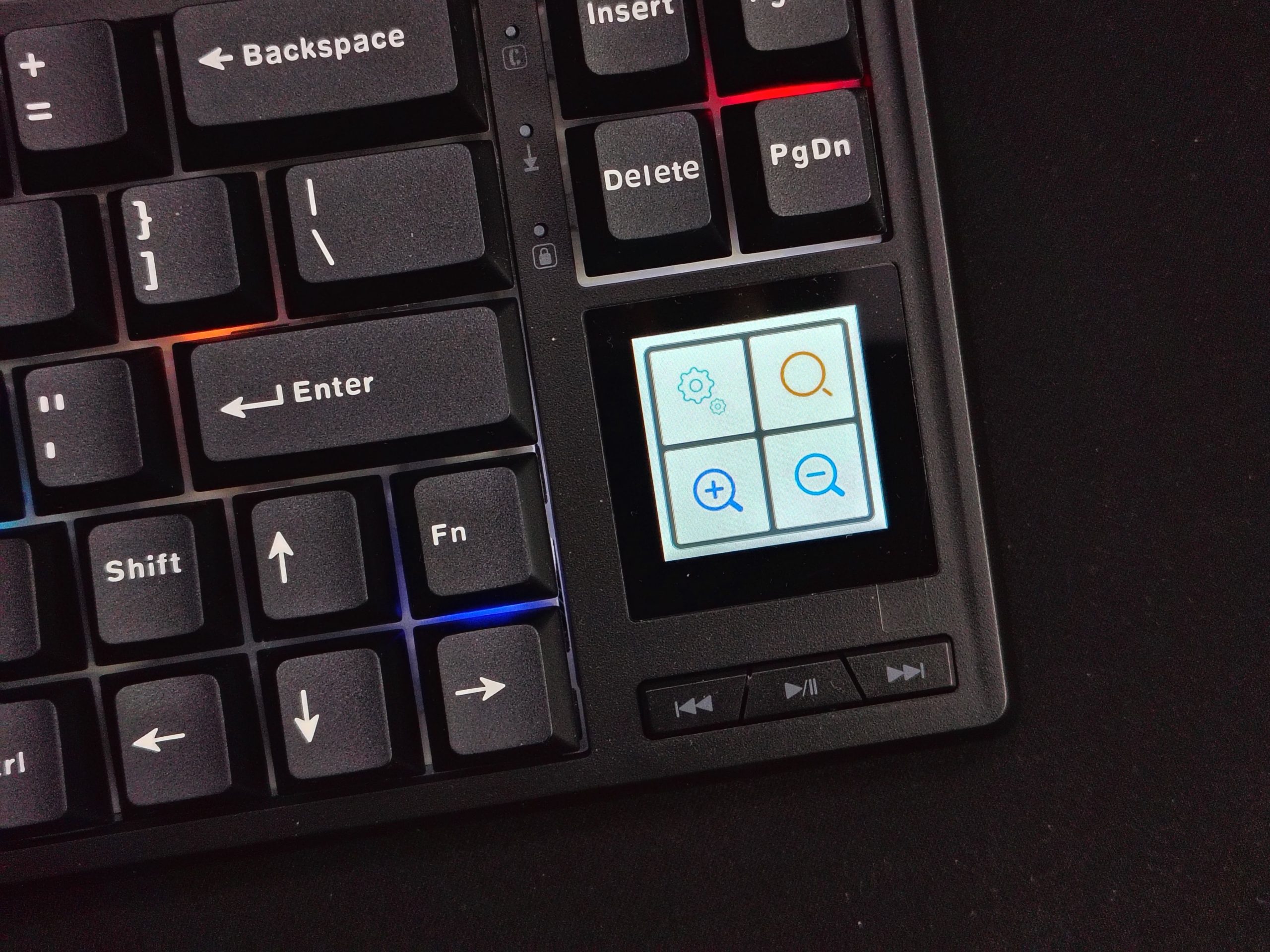Below the navigation keys, there’s a 1.54-inch touchscreen display. This touchscreen allows you to open Settings, search, zoom in or zoom out the screen, adjust volume, and capture screenshots. There’s also a blank canvas for you to add 4 quick shorts for different applications of your choice. The screen is intuitive and responsive without being overly sensitive to avoid accidental activations during typing.