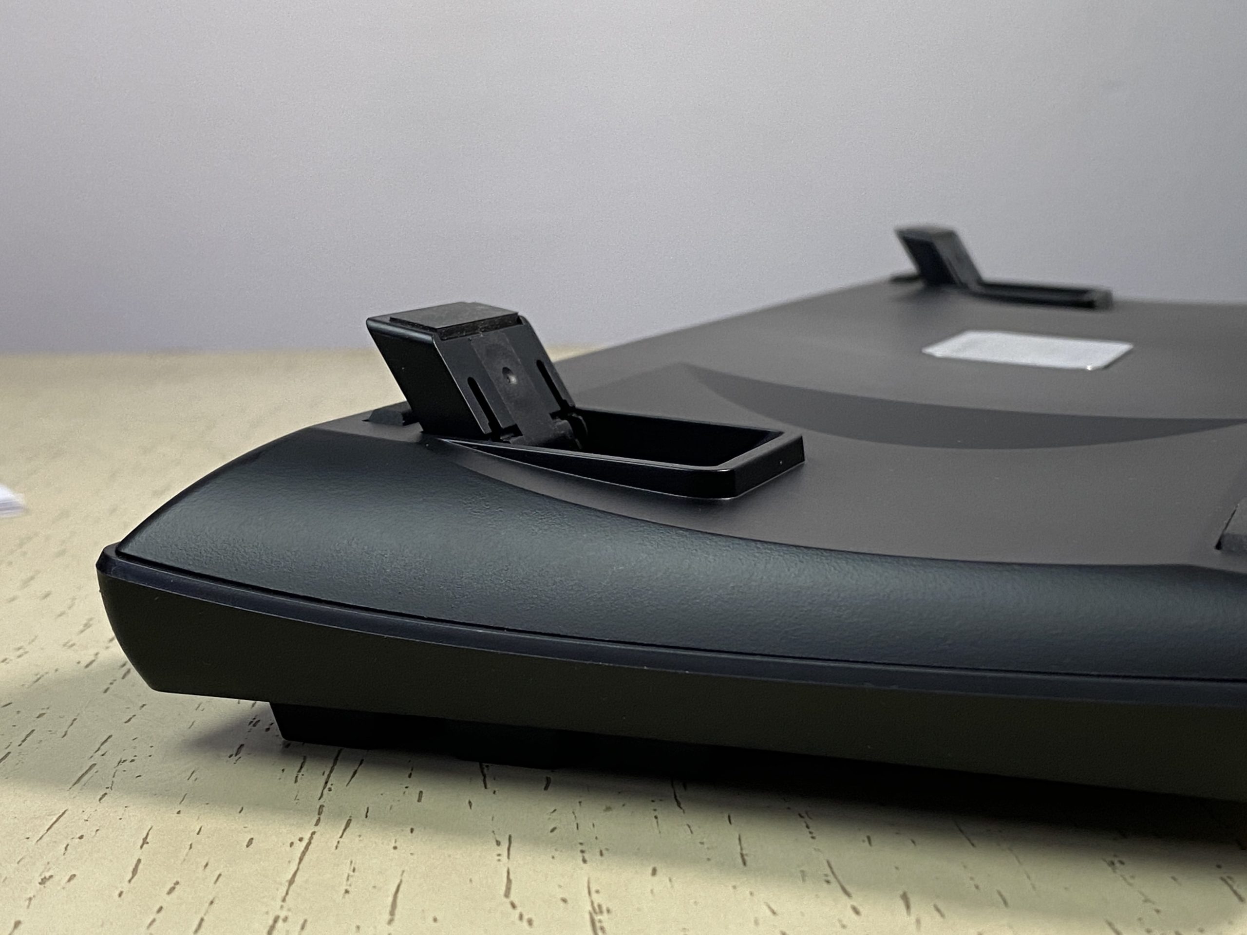 On the back, it has 5 anti-slipping rubber feet to prevent it from sliding on the desk. You can use it with two stages of elevation to get the ergonomics as per your comfort.