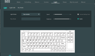 From the Light tab, you can customize the RGB lighting. There are a few light modes to choose from. You can select the speed and brightness of the RGB light. In the Light Edit tab, you can customize the RGB lighting for each key. That’s a pretty impressive thing.