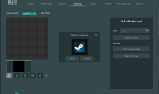 You can also create macros. The screen section lets you customize the Detachable display and touchscreen display. You can upload a Photo or GIF animation directly to the main display. You can select 4 different applications from the touchscreen section to create their quick access shortcut in the touch display.