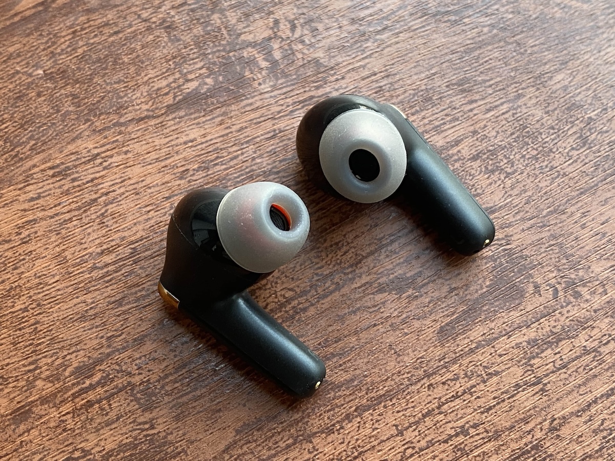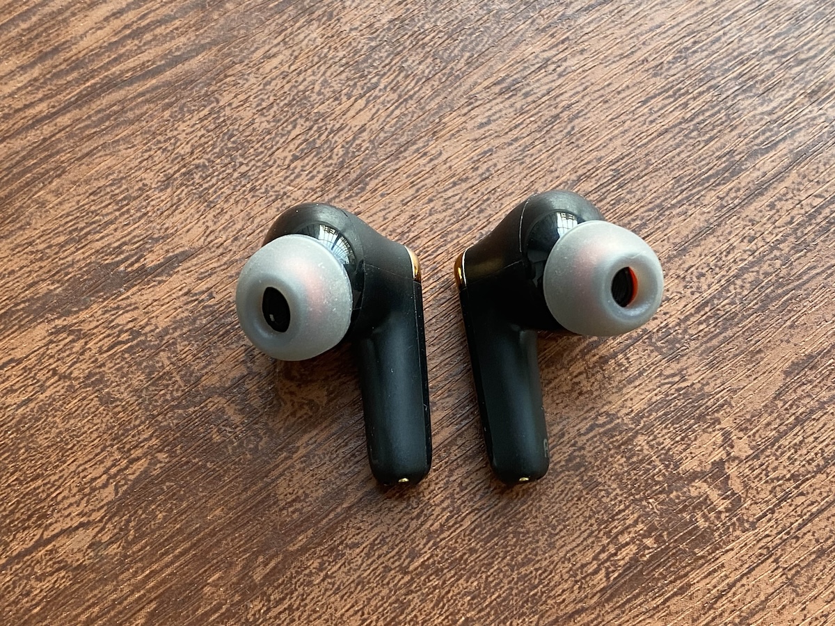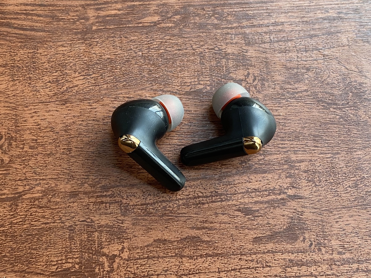 The earbuds themselves have a sleek and modern design. The gold accent at the top also feels good. It also has an LED indicator light on the stems. The buds are lightweight and comfortable to wear for extended periods. The in-ear fit is secure and prevents earbuds from falling out during activities. In case the default ear tips aren’t secure enough, you also get two extra pairs of different sizes.