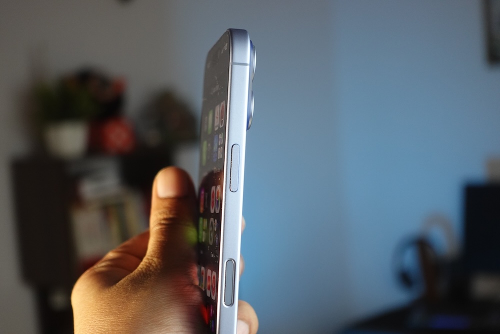 The phone still features a single solid glass back with a beautiful, vibrant color. Apple has, as usual, refreshed its color palette this year. You can get the iPhone 17 in classic Black or White, and also in new Mist Blue, Lavender, and Sage shades. The Mist Blue version that I have looks subtle and soft with a pastel-like tone, instead of being overly bright or flashy. It feels elegant and modern without trying too hard.
