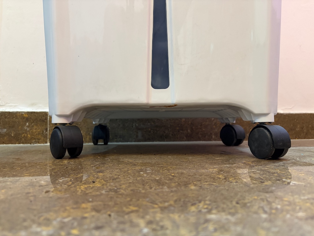 The body is built from strong plastic, and the company also mentions a 1000-meter drag test for strength. It means the cooler is designed to handle regular movement and rough handling when shifted around using its castor wheels. This is useful because coolers are often moved between rooms, especially in summer.