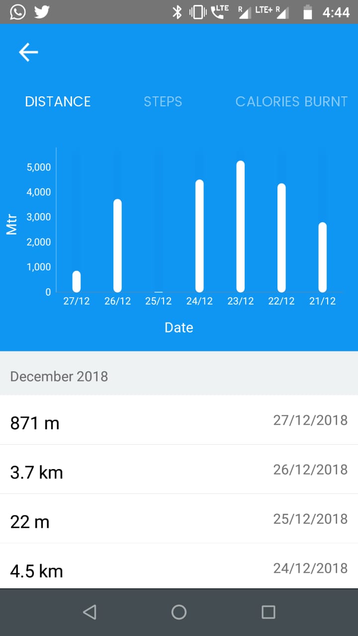 The band counts your daily steps. If you have some fitness goal in mind, you can set a daily steps goal for yourself and try to achieve it. Based on steps, it also estimates how much distance you have covered. It also keeps track of calories you burn on daily basis. That is the most common thing people want to measure using fitness bands.