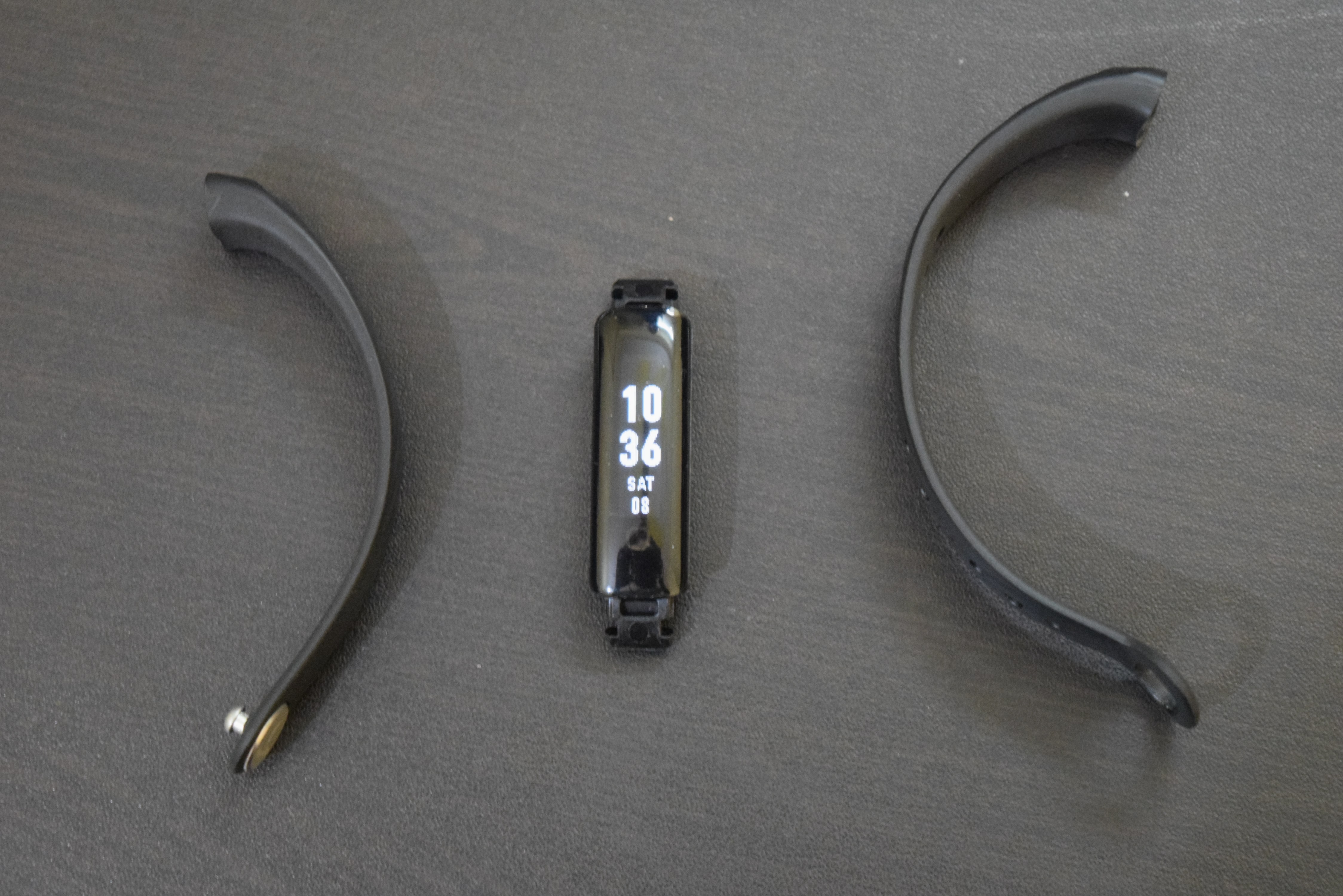 It has an OLED display on the top side that shows time and your daily stats including steps, distance, and calories. There is also a touch sensitive button to navigate through different options on the band. A single tap on this button changes option and long tap for selecting an option to see sub-options.