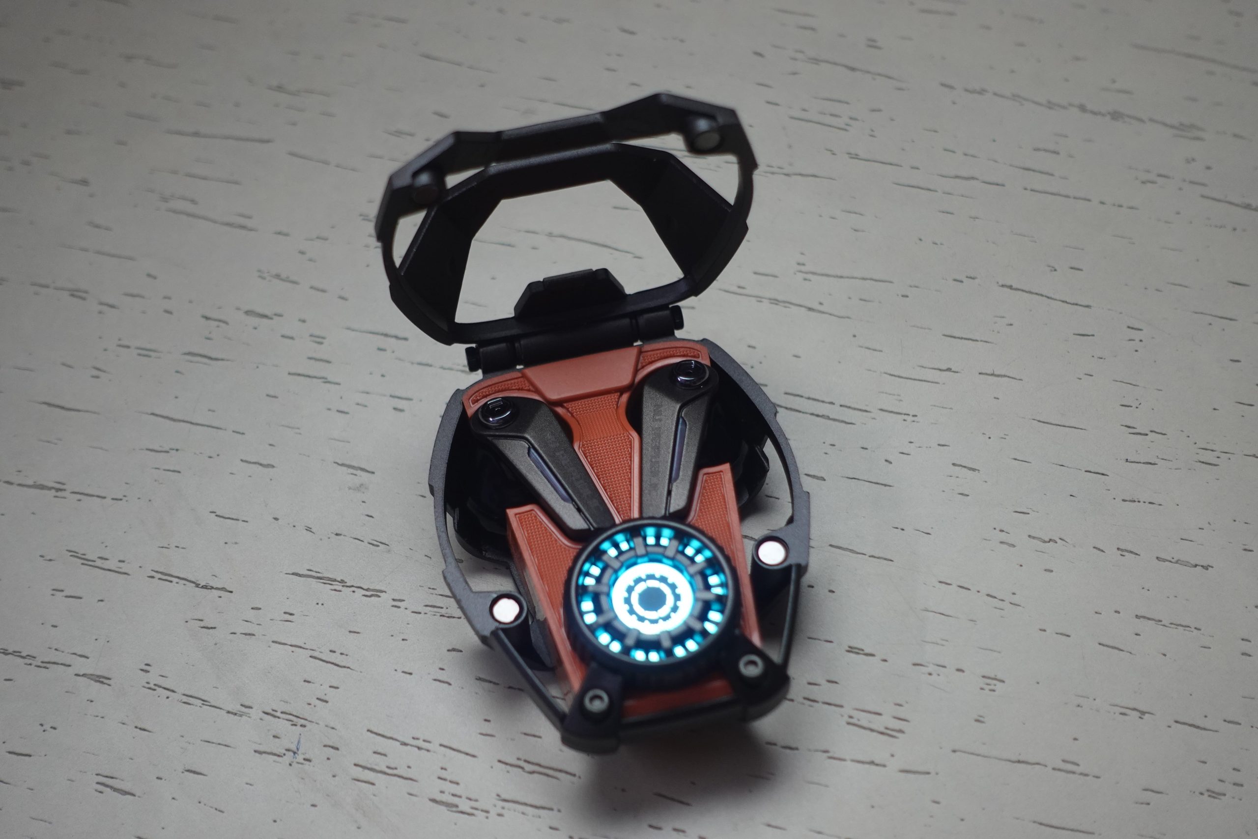 There’s a big circular LED light that resembles the art reactor of Iron Man. When you open the case, the light glows in the same way as in Iron Man suit and looks really cool. When this LED turns Red, you know it’s time to plug in the case for charging. There’s a Type-C port at the bottom for plugging it to charging. When the device is plugged in for charging, the LED keeps blinking to indicate the charging status.