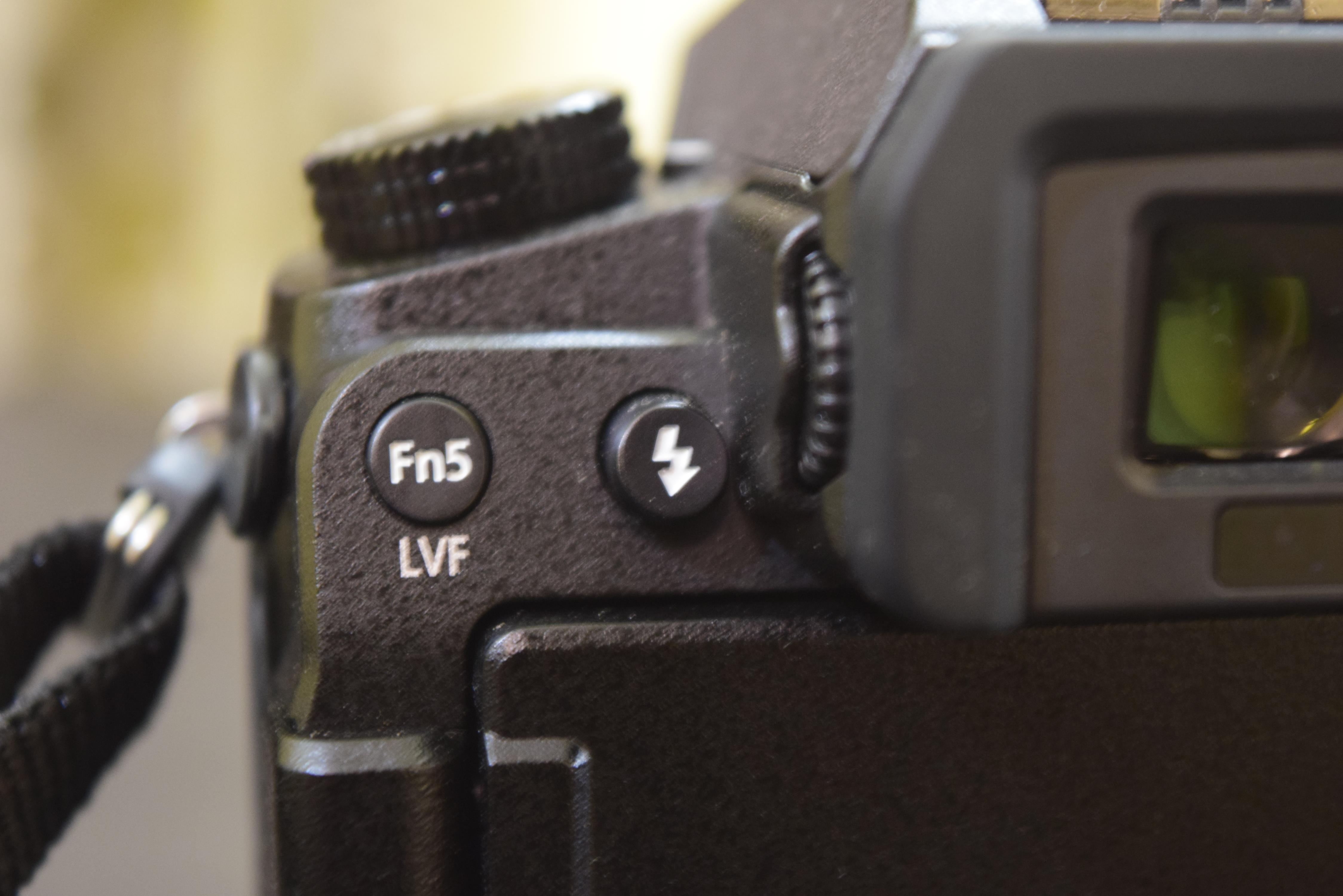 On the top right side, it has mode dial with the manual, semi-manual, and automatic modes. There is also a manual movie mode and panorama mode. Next to it, there is a power switch along with a programmable function button Fn1 and a movie record button. This video button is flat and difficult to find without looking at it.