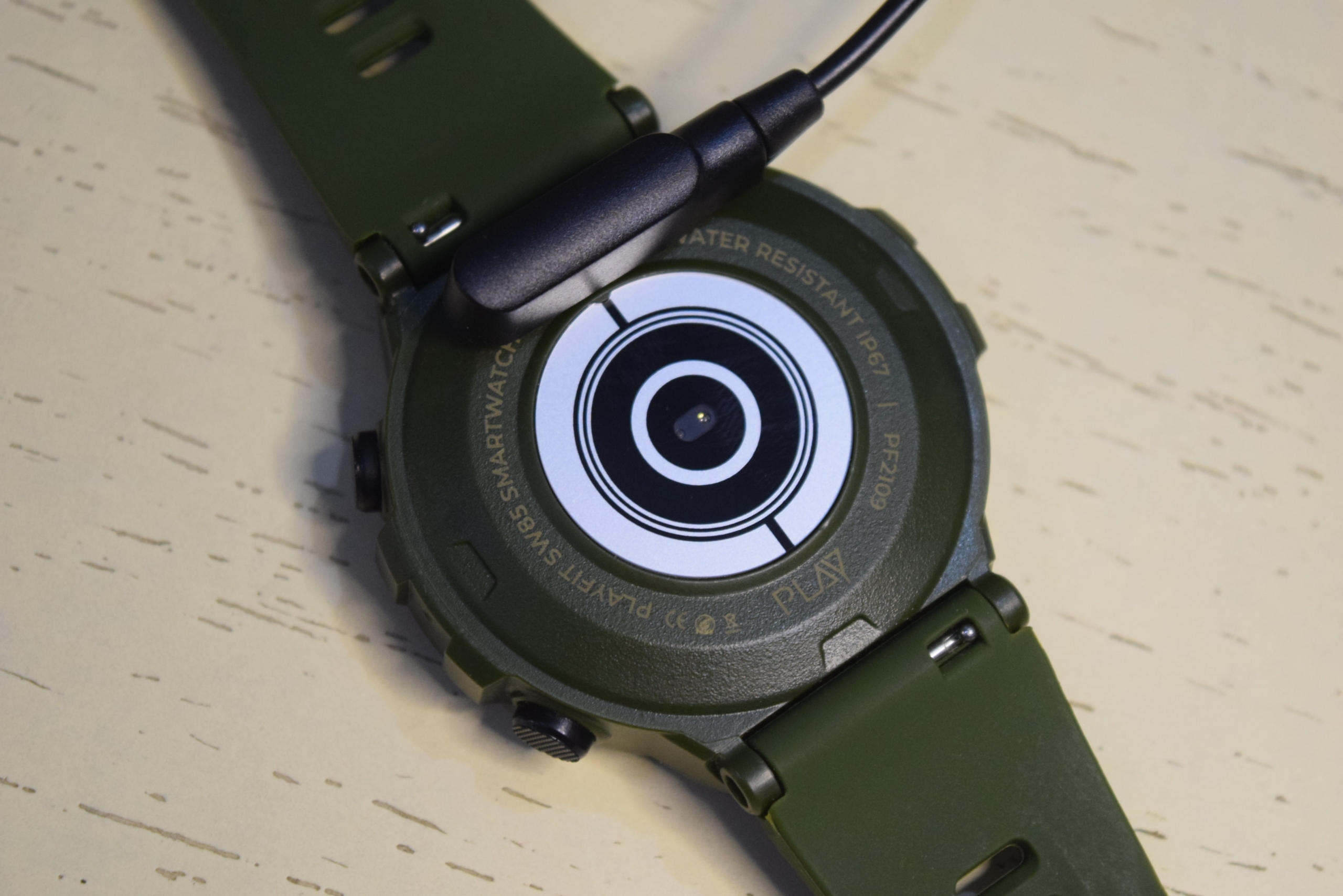 PLAYFIT Strength packs a 400mAh battery that easily lasts for more than 4 days. But the battery backup depends on the number of calls and notifications your phone gets. The company provides a charging cable that has pins to connect magnetically with the watch.