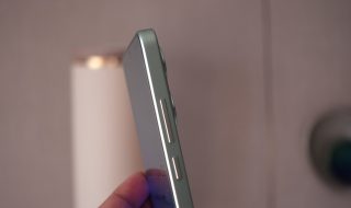 The power button and volume rockers are on the right edge. It has a speaker grille, USB-C port, and SIM card slot on the base side. You can use two SIM cards, but there’s no option to expand storage. The IR blaster is at the top edge allowing you to use this phone as a remote control for several home appliances.