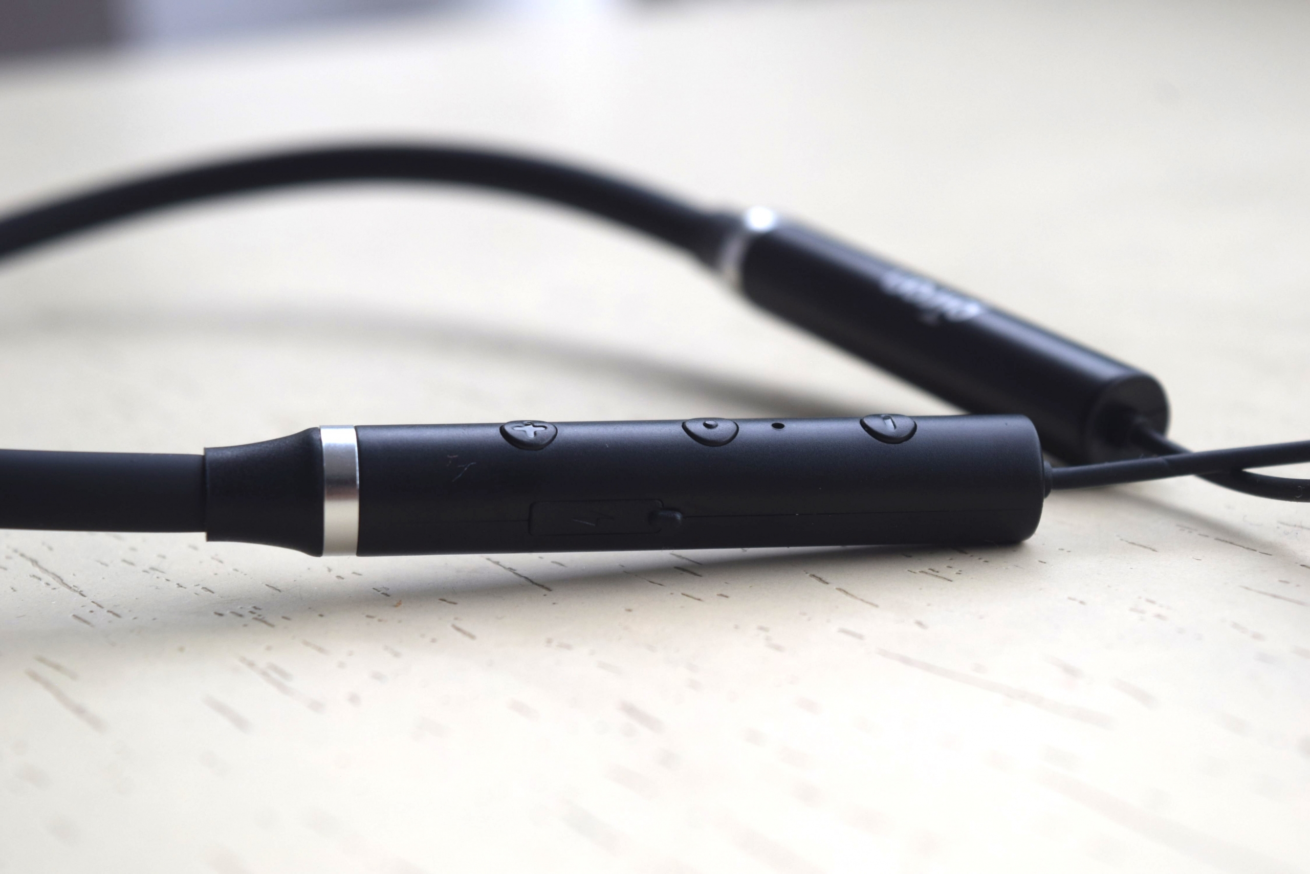 On the right side of the neckband, it has three buttons and a micro USB port for charging. There’s also a tiny notification LED. The center button is to turn the earphone on and off. It can also be used to receive or deny calls. Buttons offer tactile feedback. A long press of it activates the phone’s default voice assistant. The + and – buttons are self-explanatory. They are for volume Up and down or next or previous tracks. The position of these buttons is fine and you can easily identify them individually. So, there’s no issue in operating the earphone.