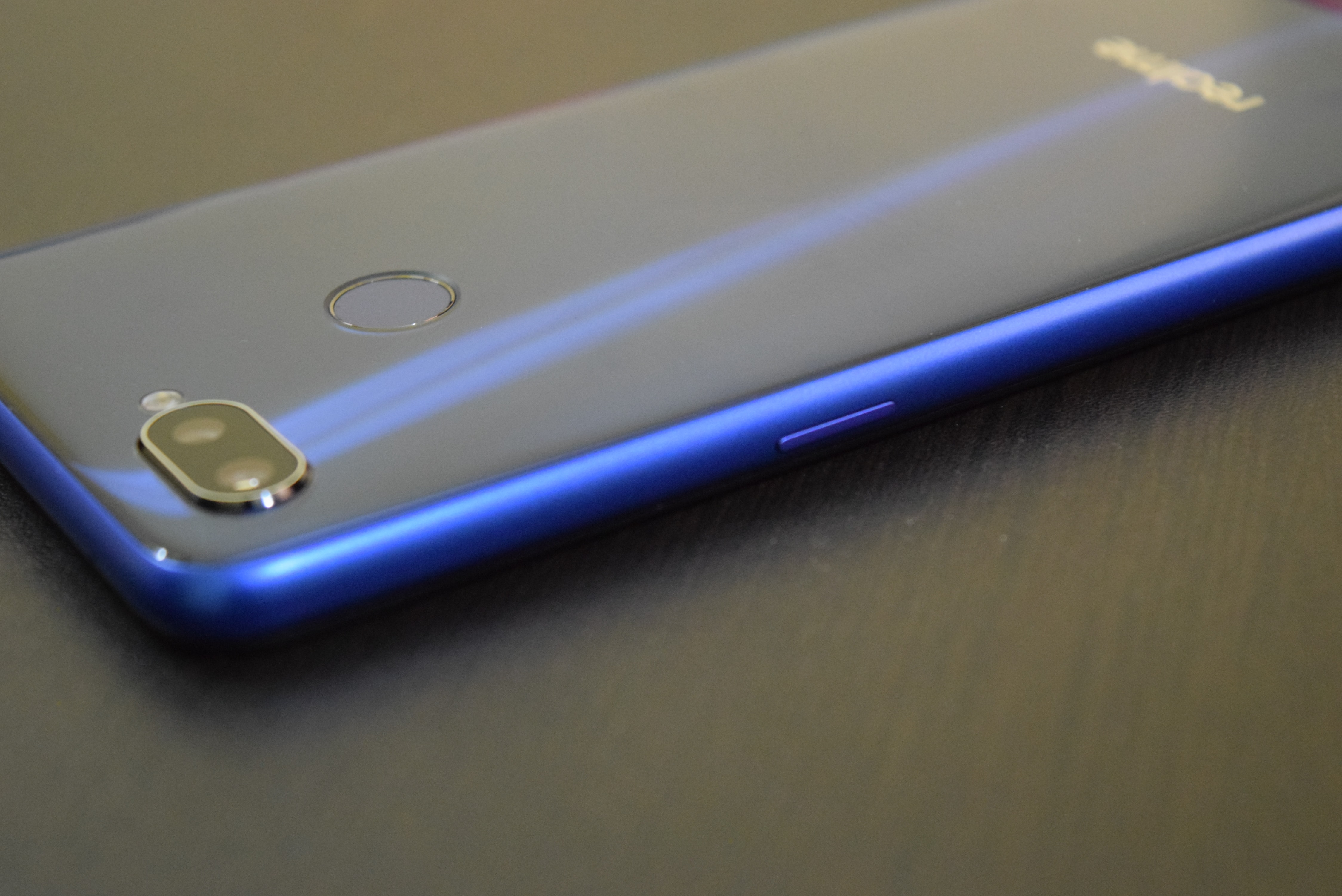 The back panel has dual camera setup on the top left side along with a fingerprint sensor on the top center. At the bottom side of the back, it has realme branding.