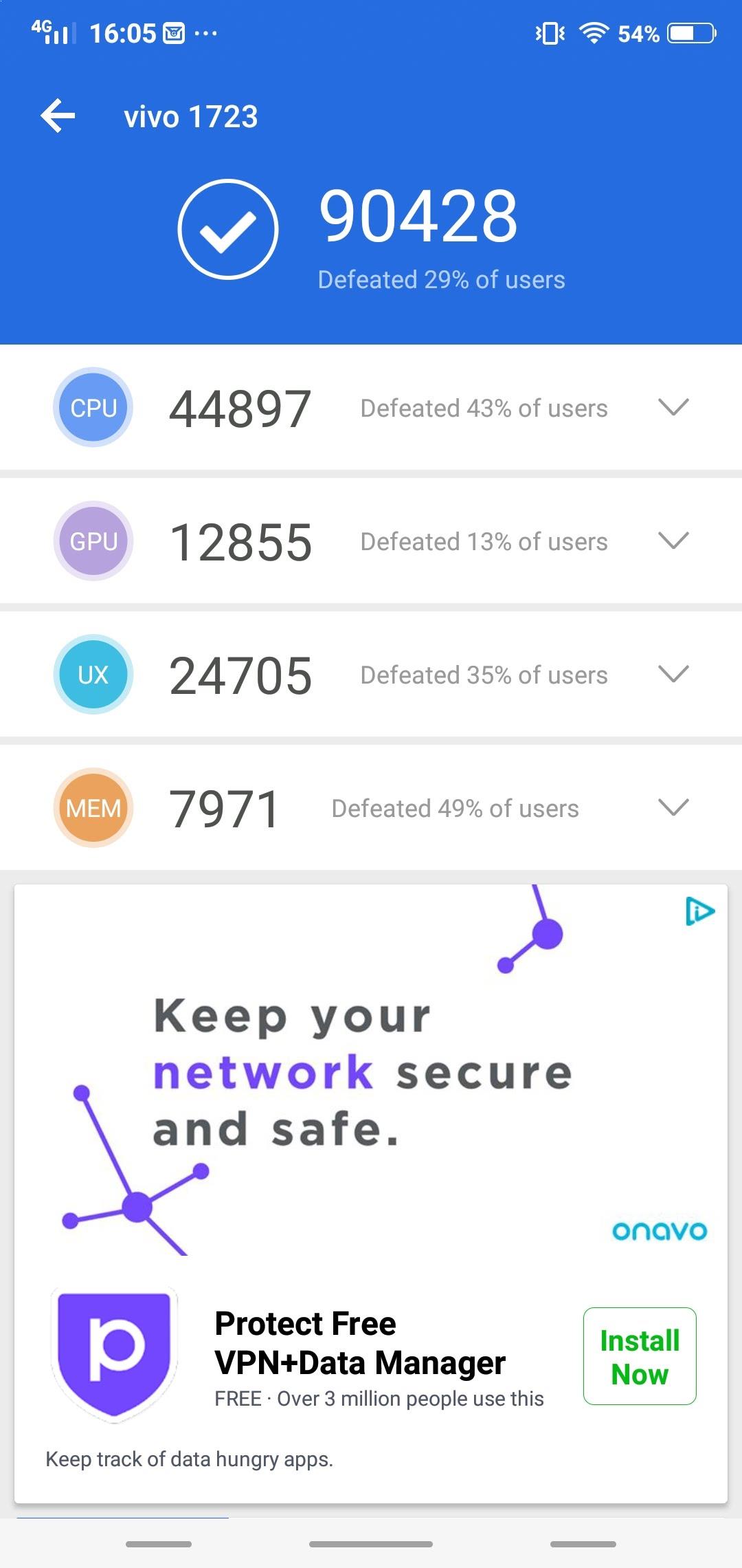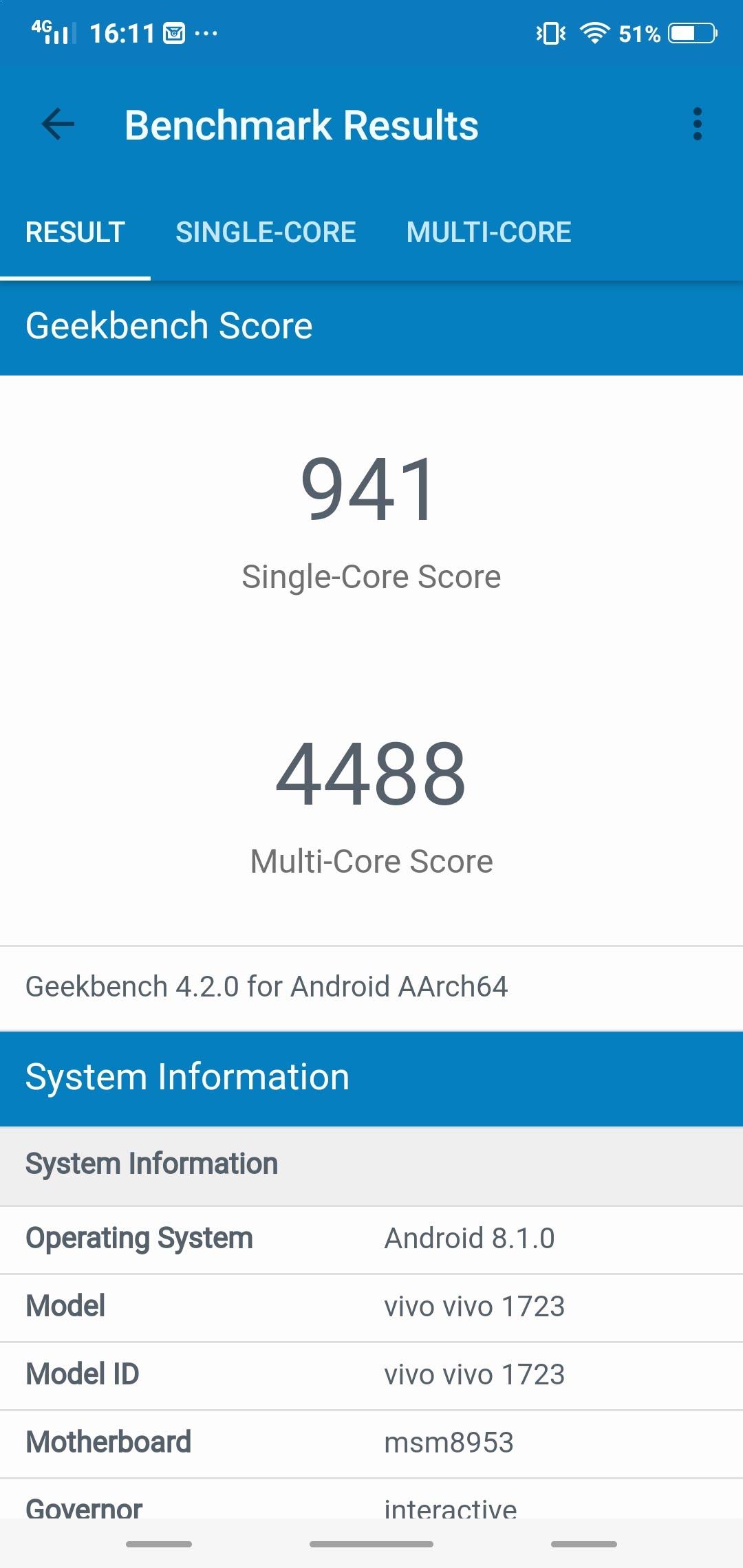 The phone packs 3260mAh battery that delivers good performance. It easily lasts for over a day with regular usage. Since Vivo does not use traditional battery stats, so it is hard to check how much the battery was used in a particular cycle. So, there is no way to check the screen-on time as well.