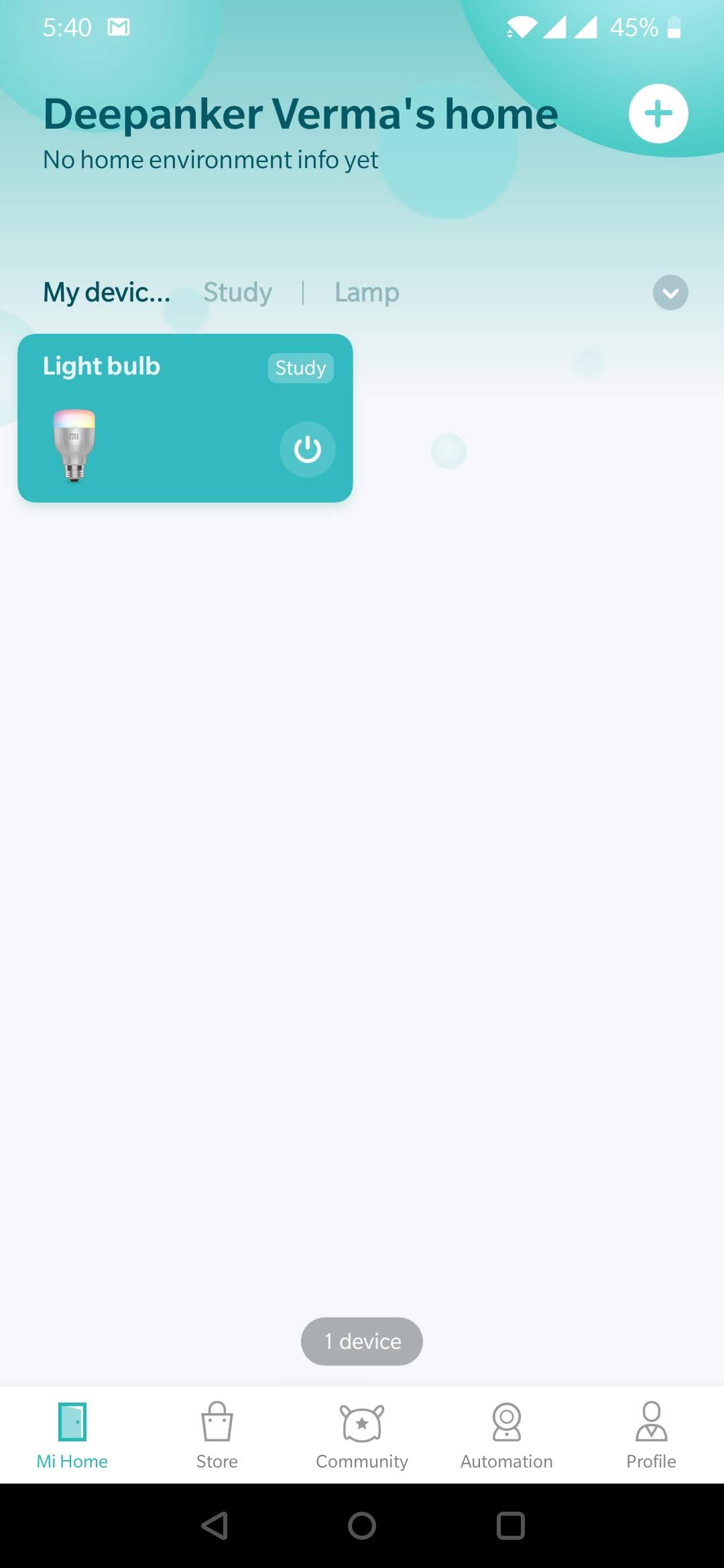 Setting up the bulb is simple. Install the Mi Home app and pair the bulb to control it using the app. You will be asked to log in to your You need to first reset the bulb before it pairs with your phone. You can do this by turning the bulb on and off for five times with a 2-second gap in between. Then it will be shown in the Mi Home app to pair. You will also be asked to select a Wi-Fi network and enter its password to connect the Bulb to your network.
