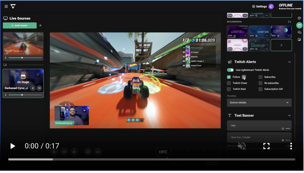 Lightstream is a cloud-based live streaming software that does not require installation. It is perfect for console gamers who want to stream their gameplay without a capture card. The software runs in a browser and automatically detects connected devices, offering seamless integration with Twitch and other platforms.