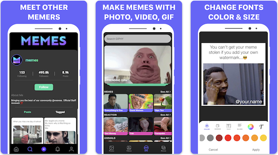 This is a powerful meme generator app that offers a quick and easy way of creating memes. It also keeps you updated with popular and trending memes. The app lets you use a custom template or build from scratch. The app also doesn’t put a watermark on your creation. You also have the option to submit your memes on the app for others to use.